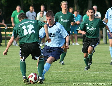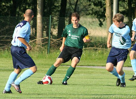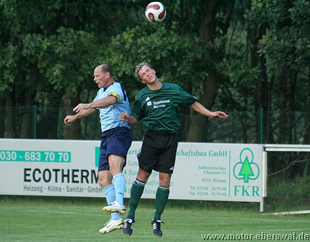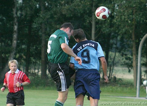 Im Testspiel gegen den Aufsteiger zur Landesklasse Freya Marienwerder gewann Motor Eberswalde mit 4:1. Frank Ploen brachte Motor nach Vorarbeit von Ferry Manteufel über die rechte Seite bereits früh in Führung, danach bestimmte Motor wie erwartet das Spiel. Wobei allerdings gegen die zäh verteidigenden Gastgeber wenig klare Torchancen heraussprangen. Diese konterten nur gelegentlich und stellten Swen Lichtenberg vor keinerlei Schwierigkeiten. Motor zog kurz vor der Pause nochmals an und erzielte nach einem schön herausgespielten Angriff das 2:0 durch Ferry Manteufel. Als die Gastgeber sich danach allzuweit nach vorne wagten, konterte diesmal Motor und Christian Rauch vollendete zum 3:0, danach war Pause. In dieser wurde die Aufstellung bis auf zwei Positionen durchgewechselt. Die anfängliche Unsicherheit nutzte Marienwerder gleich zu einem Angriff, den Torsten Maerz mit einem Zupfer gegen den zu Freya gewechselten Marcel Kelch stoppte. Den Elfmeter verwandelte der ebenfalls in Eberswalde gut bekannte Torsten Redlich zum 3:1 gegen den inzwischen im Motor Kasten stehenden Marcus Haase. Motor fand sich schnell wieder und es ergab sich das gleiche Bild. Der Ball lief durch die Eberswalder Reihen bis zum Strafraum wo Marienwerders Abwehr um den Alt-Motoraner 'Jumbo' Wiedemann sie zu stoppen suchte. Ein abgefälschter Schuss von Chritsian Schlegel stellte allerdings den alten Abstand schnell wieder her. Am Ende des Spiels gestattete Motor noch einige Konterchancen, die die Stürmer von Freya aber allesamt ausliessen. Bei Motor fehlte der letzte Pass um das Ergebnis weiter zu erhöhen, mit dem man aber auch so, für einen ersten Test zufrieden sein kann.