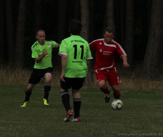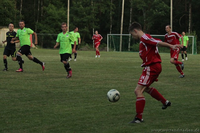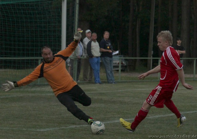 Wie schon letzte Saison wurde ein Waldlauf mit einem Testspiel in Spechthausen kombiniert. Der Gegner hielt anfangs mit seinen Mitteln ordentlich dagegen. Ein Strafstoss eröffnete dann das Toreschiessen, Christian Schlegel verwandelt sicher. 7 Minuten setzt Marcus Bülow nach, bekommt den Ball vor dem Keeper und macht den zweiten Treffer. Zwei Minuten später nimmt Rico Musick eine Flanke volley und trifft zum Dritten. Ein Doppelpack von Christian Schlegel nach einer halben Stunde schraubt das Ergebnis auf 5:0, dabei bleibt es dann auch bis zur Pause. Spechthausen hatte in der ersten Halbzeit zwei Torschüsse zu verzeichnen, wobei einer sogar nur knapp vorbei ging. In der zweiten Halbzeit baute der Gegner dann doch immer deutlicher ab, so das es für die Preussen noch mehr Platz gab und so die Torchancen im Minutentakt heraussprangen. Die weiteren Tore waren teilweise sehenswert, da war dann alles dabei. Distanzschüsse, Alleingänge, Kombinationen. Auch wenn bei einigen Treffern durch Torwartfehler die Sache zu einfach gemacht wurde, spielte man die Situationen gut aus. Am Ende war dann das ganze Dutzend voll. Spechthausen hatte kurz vor Schluss einen Pfostenschuss und kam so um den Ehrentreffer. Die Preussen liefen nach dem Schlusspfiff wieder zurück zum Westendstadion.