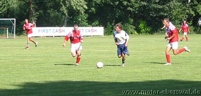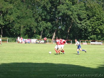 Die Reserve trat in Neuenhagen beim Landesklasse Vertreter SG Rot-Weiss an. Motor hatte den besseren Start und zeigte schnell seine technische Überlegenheit im Mittelfeld, zwei schnelle Tore ducrh Prost und Döhring führten zu einer ruhigeren Spielweise, der anfangs harmlose Gegner wurde dann jedoch wieder aufgebaut, als die Abwehr einen katastrophalen Stellungsfehler machte und ein Neuenhagener allein durch ziehen und dan Anschluss machen konnte (deren erster Torschuss), Neuenhagen nun wieder um den Ausgleich bemüht, aber weiter mit einer sehr wackligen Abwehr. Dies nutzte der Motor Sturm noch vor der Pause aus. Nach einem Presschlag standen gleich 3 Angreifer frein am Sechzehner und Schlegel hatte keine Mühe den Torwart auszuspielen und das 3:1 zu erzielen. Obwohl lautstark Abseits reklamiert worden war zählte das Tor. Aus der Kabine kam Neuenhagen dann mit viel Schwung und bei Motor zeigte sich, das keine eingespielte Abwehrformation auf dem Feld stand. Nach einer Ecke konnte Neuenhagen per Direktschuss auf 3:2 verkürtzen. In der folgenden fünf Minuten drückte Neuenhagen dann mächtig auf den Ausgleich, gleich drei Grosschancen wurden vergeben. Zuerst ein Schuss aus spitzem Winkel an die Latte, dann ein Kopfball nach Ecke den Swen Lichtenberg mit einer Hand hielt und gleich noch ein Alleingang, der allerdings abgedrängt werden konnte. Als die Druckphase etwas nachliess, setzte sich Christan Schlegel über rechts durch und traf mit seiner Eingabe in die Mitte das Bein des Torwarts und der Ball trudelte ins Tor. Damit war bei Neuenhagen der Zahn gezogen und Motor bekam das Spiel wieder voll in den Griff. Au der Konterstellung heraus hatte Motor noch mehrere Chancen, zwei wurden davon noch genutzt. Zuerst setzte sich Döhring im eins gegen eins durch und vollendete unbedrängt. Den Schlusspunkt setzte der Neuenhagener Torwart dann selbst, als eine Rückgabe eines Abwehrspielers durch die Arme zum 6:2 Endstand durchrutschen liess.
