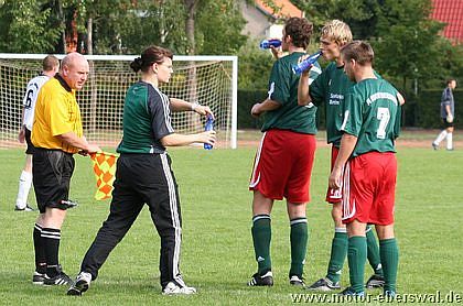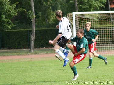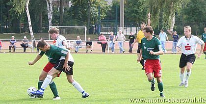 Trotz einiger kurzfristiger Ausfälle konnte Motor das Pokalspiel beim Landesligisten Fortuna Babelsberg gewinnen. Die erste Gelegenheit hatten die Hausherren, nachdem sie mit einem schnellen Vorstoss über links die Motor Abwehr überliefen und in der Mitte Koschan mit einem Direktschuss abrutschte, so das der Ball neben das Tor trudelte. Motor danach mit zwei Gelegenheiten. Aber sowohl Christian Schlegel als auch Rafet Ates verfehlten den Kasten knapp. Bei Motor wenig Tempo im Spiel, stand zwar in der Defensive sicher, erarbeite sich aber zu wenig Torchancen. Frank Ploen mit einem Volleyschuss, der abgeblockt wurde und Felix Kalohn per Kopf sorgten noch vor der Pause für Gefahr, die jedoch auch bei zwei Kontern der Babelsberger aufkam. Nach der Pause machte Motor mehr Druck. Nach einer Flanke von Christian Hintz erzielte Rafet Ates per Kopf die Führung für Eberswalde. Nun gab es noch zwei größere Gelegenheiten nachzulegen. Steffen Sasse traf aus spitzem Winkel das Außennetz, Johannes Persecke schossen Direktabnahmen knapp über die Querlatte. In der Schlussphase warf Babelsberg alles nach vorne und hatte bei mehreren Situationen den Ausgleich auf dem Fuß. Zunächst standen gleich drei Babelsberger vorm Tor von Olaf Pospieszny, das sie sich aber gegenseitig behinderten war der Schuss kein Problem für den Motor Keeper. Ganz anders nach einem Heber von der linken Seite. Dieser ging gegen die Unterkante der Latte und den Innenpfosten, spang jedoch zurück ins Feld. Babelsbergs auffälligster Spieler Koschan hatte zwei Minuten vor dem Ende noch einer Gelegenheit, als er bedrängt von Felix Kalohn einen Schuss aus 16 Metern übers Tor schoss. Im Gegenzug konterte Motor die aufgerückte Defensive der Babelsberger aus. Rafet Ates setzte sich dabei mit einem Solo gegen drei Abwehrspieler durch legte auf Johannes Persecke auf, der den Ball nur noch ins leere Tor einschiessen musste. Unmittelbar danach war das Spiel zu Ende.