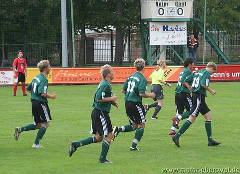 Starken Paraden von Swen Lichtenberg und einer glücklichen 2:0 Führung war es zu verdanken das Motor gegen Neustadt einen Punkt holte. Dabei waren die Gäste über das ganze Spiel die aktivere Mannschaft und hatten gleich zu Beginn eine Großchance, als der Motor Keeper bei einer Fußabwehr unterm Ball durchschlug, die Neustädter aber Frank Engel auf der Torlinie anschossen. Motor dann fast im Gegenzug mit der Führung. Die auf Abseit spekulierende Abwehr wurde von Christian Schlegel überlaufen, der vors Tor auf Sirko Neumann ablegte. Dessen Schuss stoppte der Torwart zwar, aber deutlich hinter der Linie. Motor nun mit einer kurzen Phase der Überlgenheit, lies durch Johannes Persecke und Christian Schlegel eine höhere Führung aus. Das 2:0 dann ein Geschenk. Eine halbhohe Rückgabe lies der Neustädter Torwart mit der Brust nach vorne abtropfen, so das sich André Germer den Ball schnappen konnte. Er brachte Christian Rauch in Schussposition, aber dieser bediente Ferry Manteufel der dann wirklich keine Mühe mehr hatte. Motor zog sich bereits vor der Pause weit zurück und setzte nur noch auf Konter, die die Neustädter nicht mehr gestatteten. Diese Linie setzte man in der zweiten Hälfte fort, so das Neustadt pausenlos im Vorwärtsgang war und Motor immer mehr unter Druck geriet. Dazu kam das die Pässe nach vorne herzlich ungenau geschlagen wurden und die Stürmer konditionell sichtlich abbauten. Neustadt erspielte sich so zahlreiche Großchancen, jedoch erst nach einer Flanke von links, die vorm Tor abgelegt wurde war Opitz zum Anschlusstreffer zur Stelle. Motor nun nur noch ängstlich auf Verteidigung des Vorsprungs aus, verspielte diesen jedoch kurze Zeit später. Nach einem Freistoss wurde Sirko Neumann genau im Gesicht getroffen und blieb liegen. Die Neustädter nutzen die Lücke und trafen im zweiten Nachschuss zum Ausgleich. Den Rest der Spielzeit versuchte Motor zwar wieder nach vorne zu kommen, hatte aber in der gesamten zweiten Halbzeit keine torgefährliche Szene mehr. Stattdessen verschenkte Neustadt einen möglichen Siegtreffer, als sie in der 80.Minute plötzlich mit zwei Mann alleine vorm Tor standen. Aber der Schütze an einer Glanzparade von Swen Lichtenberg scheiterte. Auch sonst spricht ein Eckenverhältnis von 1:12 Bände, das Motor lediglich mit viel Glück ein Unentschieden rettete. Auch die Einwechslung der beiden Stürmer Maik Redlich und Thoralf Krause brachte keine Besserung, sie fanden überhaupt nicht ins Spiel.