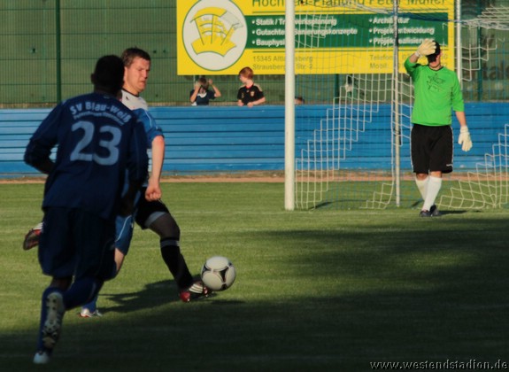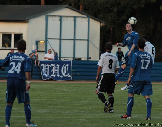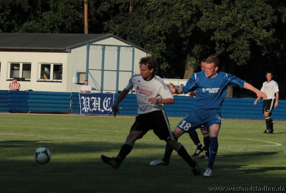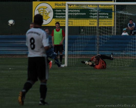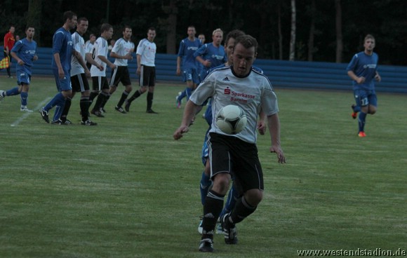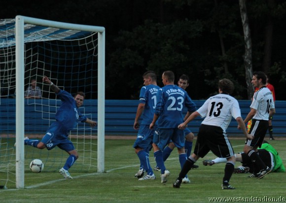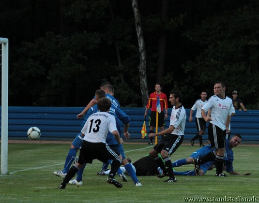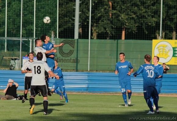 Petershagen zu Beginn mit mehr Zug zum Tor aber noch nicht zwingend. Kann dann aber gleich zweimal davon profitieren das die Viererkette mit der Abseitsfalle völlig versagt und auch Torwart Mathias Krause nicht gerade glücklich positioniert ist. Nach dem 0-2 Rückstand, hat man durchaus die Chancen noch vor der Pause zurückzukommen, Christian Schlegel trifft die Querlatte und unmittelbar vor der Pause springt ein Ball vom Innenpfosten zurück ins Feld. Nach der Pause wird der Druck erhöht und man schnürt die Heimmannschaft regelrecht ein. Kristian Stelse kann aus dem Gewühl heraus das 1-2 machen, der Ball wird erst hinter Linie geklärt. Nach einem Doppelpass zwischen Christian Schlegel und Rico Musick ist Marcus Bülow wenig später frei vorm Torwart mit dem Kopf am Ball und macht den Ausgleich. In dieser Phase ist man durchaus dabei das Spiel zu beherrschen.Lässt sich aber im Gegenzug auskontern und fängt sich das letztlich vorentscheidende 2-3. Danach wird erneut bis zum Schluss angerannt, aber trotz zahlreicher Chancen fällt der Ausgleich nicht. Als Petershagen gegen die nun weit aufgerückten Eberswalder fünf Minuten vor Schluss den vierten Treffer macht, ist das Spiel verloren.