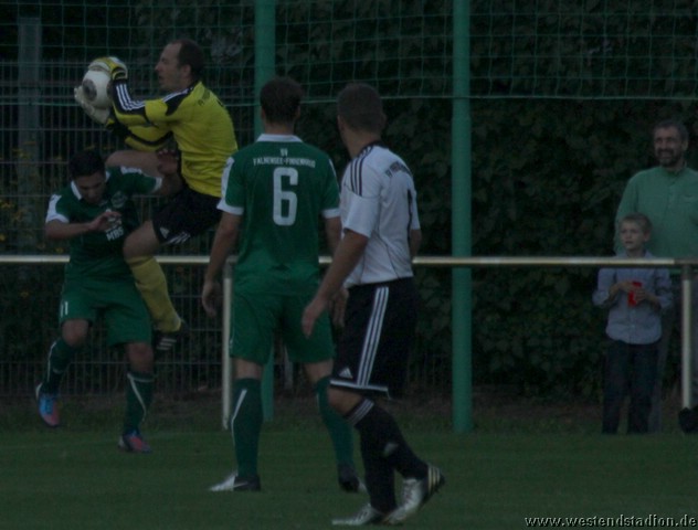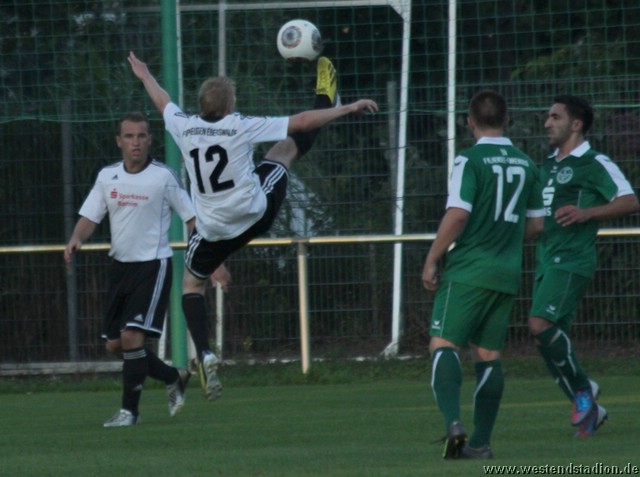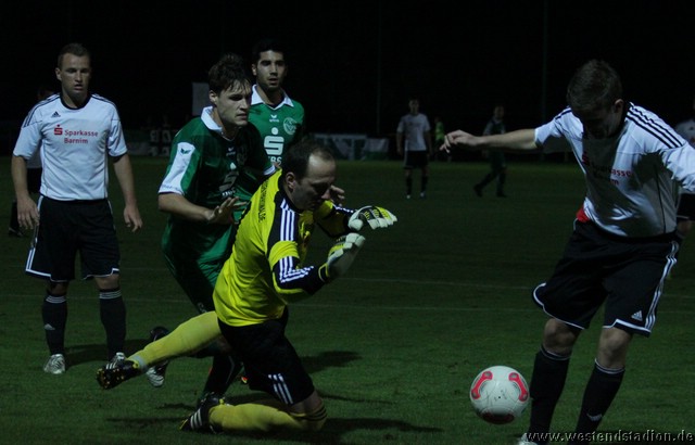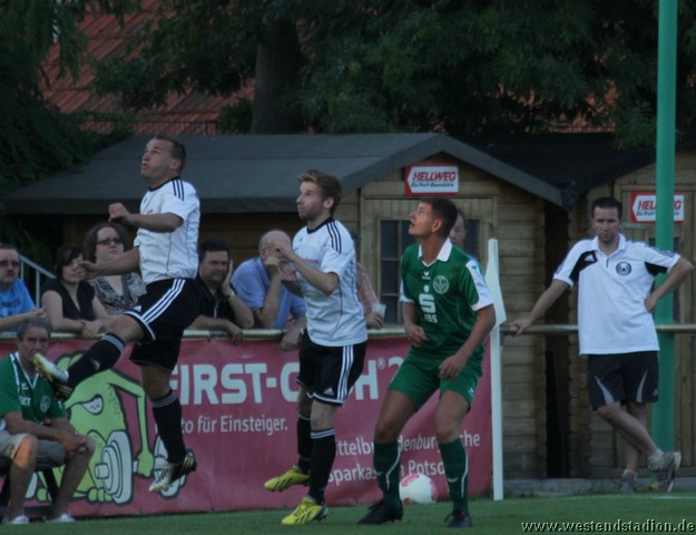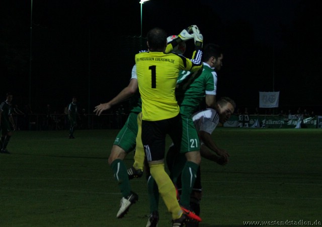 Gleich die erste Aktion von Falkensee macht ein Missvertändnis zwischen Swen Lichtenberg und Sebastian Schmidt richtig brenzlich, denn der Ball wird beim Versuch zu klären neben das Tor gelenkt, so das fast noch ein anderer Stürmer ran gekommen wäre. Die Unsicherheitein bleiben aber bestehen und mit dem nächsten Angriff macht Falkensee die Führung. Keine zwei Minuten später wird nachgelegt, eine Flanke von links wird von Konrad Schulz verpasst und sein Gegenspieler köpft unbedrängt ein. Nach vorne läuft für Preussen eine halbe Stunde gar nichts, dann haut Christian Schlegel von der Strafraumgrenze einfach mal drauf und der Torwart lässt den Ball, den er eigenlich sicher abwehren müsste durchrutschen. Nun zeigt auch Falkensee Nerven und ein Schuss von Rico Musick geht knapp daneben. Einen Freistoss von Nils Naujoks pariert der Keeper kurz vor der Pause und verhindert so den Ausgleich. Im zweiten Abschnitt wird Falkensee wieder aktiver, sichert aber auch hinten besser ab. Die Eberswalder laufen sich jetzt vor allem über die Seiten fest ohne zun Torchancen zu kommen. Die Vorentscheidung dann, als Swen Lichtenberg einen Ball nach einer Flanke von der linken Seite zunächst fängt, dann aber nach hinten über Schulter prallen lässt. Dem Kopfball, den der mitgelaufene Stürmer dann ansetzt kann er nur noch ins Tor hinterher gucken. Falkensee steht danach tiefer und spielt geschickt die Uhr runter, bringt sich aber selber in Schwierigkeiten, als ein Spieler beim Versuch den Ball nach Abpfiff noch wegzuschlagen, aus 20 Metern genau den Linienrichter abschiesst. Dafür sieht er die rote Karte, aber aus der Überzahl können die Preussen wenig machen, auch weil man sich immer wieder festdribbelt und aus der zweiten Reihe keinen platzierten Schuss zu stande bringt. Falkensee gewinnt verdient und angesichts der nächsten anstehenden Gegner dürfte es für Preussen nicht einfacher werden.