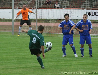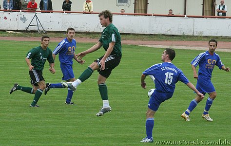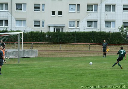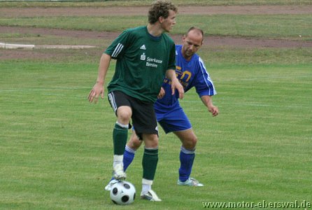 So richtig wusste Motor vor dem Spiel noch nicht wie man nach dem personellen Umbruch stehen würde, am Ende konnte man mit einem 4:0 Auswärtssieg in die Saison starten. Das Spiel zunächst mit viel Kleinklein im Mittelfeld, Chancen nach Abwehrfehlern wie aus dem Nichts. Zuerst Schwedt, aber Bartosz Lapinski scheitert im Eins gegen Eins an Swen Lichtenberg. Dann auch der anderen Seite Motor durch einen Kopfball von Johannes Persecke, knapp daneben. Motor hatte größerere Schwierigkeiten sich gegen die körperlich robusten Schwedter durchzusetzen, während diese recht einfallslos ihre Angriffe aufbauten und die Bälle häufig vor dem Strafraum im Zweikampf verloren. Motor versuchte immer wieder die Stürmer Rafet Ates und Johannes Persecke steil zu schicken, hatte jedoch noch nicht die Genauigkeit. Dennoch wurde es bei Schüssen von Johannes Persecke (22. knapp daneben) und Rafet Ates (32.gehalten) nochmal gefährlich. Schwedt hatte vor der Pause die größte Gelegenheit, als Ümit Ergin einen Heber nach einer Ecke von der Linie köpfte. Doch in der ersten Halbzeit klappte noch ein Angriff, als Christian Schlegel diesmal Johannes Persecke den Ball auf den Fuß spielte und der junge Motor Stürmer zur Führung verwandeln konnte. Auch in den zweiten Abschnitt kam Motor mit den besseren Chancen, zunächst strich ein Schuss von Johannes Persecke links am Tor vorbei, dann fälschte ein Schwedter Abwehrspieler einen Ball von Rafet Ates knapp rechts neben das Tor ab. Die größte Chance auf den zweiten Treffer bekam Mirko Rücker, der nach einem Foul an Rafet Ates im Strafraum vom Elfmeterpunkt aus ran durfte, aber am Schwedter Keeper scheiterte. Schwedt kam nun nochmal auf und hatte zwei klare Ausgleichschancen. Zunächst ging ein Schuss aus der Drehung von 10 Metern knapp rechts am Tor vorbei, Ümit Ergin stand nach einem Kopfball wieder genau richtig auf der Linie und klärte. Auch setzte Schwedt einen weiteren Heber gegen die Unterkante der Latte, Swen Lichtenberg machte es besser als ehemals Piplica und köpfte den Ball aus dem Gehäuse. Nur drei Minuten später dann die Entscheidung zu Gunsten der Eberswalder, Rafet Ates nutzte eine Konterchance zum 2:0. Danach verlor Schwedt für zehn Minuten völlig die Ordnung in der Defensive. Denn gleich im Anschluss war Thomas Döhring frei durch, wurde aber in letzter Sekunde gestört. Steffen Sasse zog aus spitzem Winkel ab, Ball gehalten. Besser machte es Marcus Bülow, der unmittelbar nach seiner Einwechslung nach dem Schuss von Rafet Ates zum 3:0 abstaubte. Motor konnte nun machen was sie wollten und überliefen Schwedt nach deren Ballverlusten nach Belieben. Marcus Bülow machte den Doppelpack perfekt und schob drei Minuten später zum 4:0 ein. Auch Thoralf Krause und Christian Schlegel hatten noch weitere Torgelegenheiten. Aber auch das 4:0 reichte zur ersten Tabellenführung der Saison.
