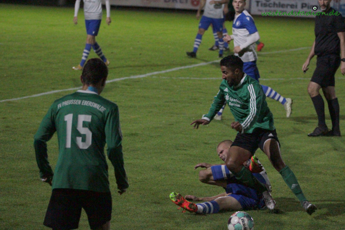 Obwohl Schöneiche gleich zu Beginn mit zwei guten Torchancen begann , hielt Preussen sofort dagegen und kam mit der ersten richtigen Torchancen gleich zur Führung. Julian Baumgarten flankt den Ball zum Elfmeterpunkt , wo Ceif Ben-Abdallah einläuft und frei vorm Torwart einköpft. Das Spiel danach verteilt. Preussen kann den Gegner gut vom eigenen Gehäuse fern halten und setzt immer wieder schnelle Angriffe meist über die linke Seite. Der zweite Treffer dann zum richtigen Zeitpunkt kurz vor der Pause. Julian Baumgarten setzt zu einem Dribbling an der linken Grundlinie an und bringt den Ball vors Tor. Wo zunächst Adrian Schedlinski mit einem Schuss scheitert da ein Schöneicher Bein dazwischen ist, Der Ball kommt jedoch zum Schützen zurück und diesmal legt er Ceif Ben-Abdallah auf und dieser vollendet aus Nahdistanz sicher.