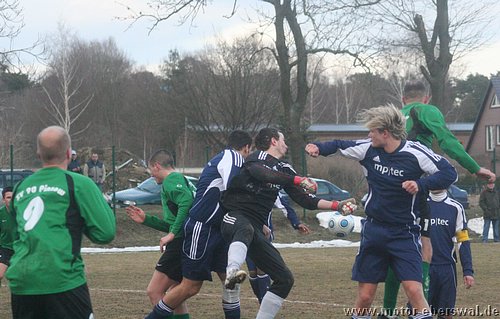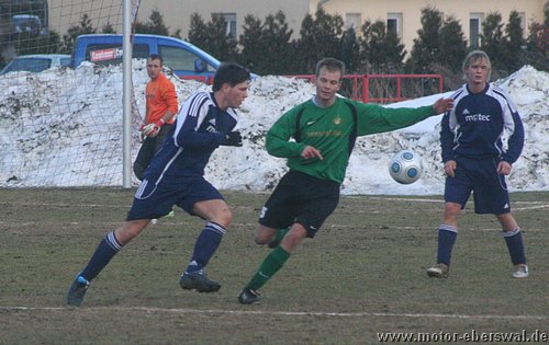 Pinnow bot einen bespielbaren Platz und so konnte das erste Rückrundenspiel für die zweite Mannschaft stattfinden. Aber wirklich geboten wurde bei dem Spiel dann nicht. Torchancen für Motor II waren im Spiel praktisch überhaupt nicht vorhanden. Selbst einige beherzte Einzelaktionen blieben hängen weil die Übersicht für den Nebenmann fehlte. Entschieden wurde das Spiel wieder durch krasse Fehler in der Defensive, die die Pinnower auch konsequent ausnutzten. Mehr nennenswerte Szenen als die, die zu den Toren führten hatten die Hausherren allerdings auch nicht, so das man ihnen zumindest eine große Effektivität bescheinigen kann. Bereits nach 20 Minuten konnten sie einen Querschläger im Strafraum abstauben und aus 10 Metern verwandeln, ein Konter nach einer halben Stunde überlief die Motor Abwehr und wurde zum zweiten Treffer genutzt. In der zweiten Halbzeit machte dann ein Sontagsschuss aus 25 Metern alles klar. Ein an der Mauer abgefälschter Freistoss eine Viertelstunde vor dem Ende stellte das Endergebnis her. Motor II war durch das frühe verletzungsbedingte Ausscheiden von Thomas Döhring sichtlich gehemmt und agierte über weite Strecken ohne Zusammenspiel. An den Platzverhältnissen lag das allerdings nicht, die waren zwar nicht ideal, aber für die Jahreszeit annehmbar.