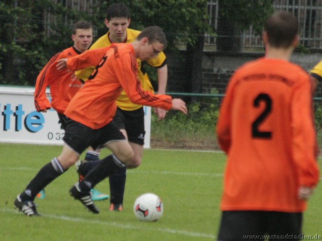 Auch gegen die in Unterzahl angetretenen Granseer war man zwar spielbestimmend, vergab aber die Möglichkeiten und hatte sich im strömenden Regen immer wieder gefährlicher Konter zu erwehren. Erst nach einer Ecke schafft es Domenick Adam die Führung zu erzielen. Aber schon fünf Minuten später gelingt Gransee der Ausgleich und nur wenig später rettet Marcus Lanzrath die Preussen sogar vor einem Rückstand. In der zweiten Halbzeit baute der Gegner dann doch mehr und mehr ab. Dennoch brauchte man fast eine Viertelstunde bis sich das auch im Ergebnis nieder schlug. Kenny Ladewig machte das 2-1 und Nick Lange mit einem Fernschuss das 3-1 wodurch das Spiel entschieden war. Das nun einsetzende Spiel auf ein Tor konnte dann doch noch standesgemäss abgeschlossen werden.