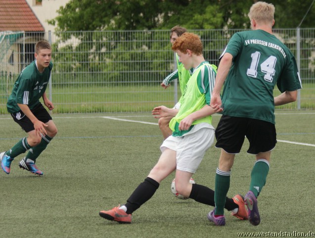 Die Führung gelang früh durch Nick Lange und konnte schnell durch Lucas Brobowski ausgebaut werden. Danach waren genug Chancen da um einen deutlichen Vorsprung klar zu machen, aber zu viel Nervosität und so mancher umstrittener Abseitspfiff verhinderten das. Spätestens nach dem dritten stark herausgespielten Tor durch Paul Schuster war das Spiel entschieden, vom Gegner war außer ein paar Verlegenheitsschüssen nichts zu merken. In der zweiten Hälfte begann es nicht nur zu regnen, bei Preussen merkte man immer deutlicher die Doppelbelastung des Wochenendes und so gab es auch für die Heimmannschaften Möglichkeiten, auch wenn sie diese alle vergaben. Selber spielte man nur noch wenige klare Szenen heraus. Erst in der Schlussminute fiel Lucas Broboswki ein Abschlag vor die Füße und er machte im Alleingang den vierten Treffer. Durch den Sieg bleibt man weiter an Hennigsdorf in der Tabelle dran.