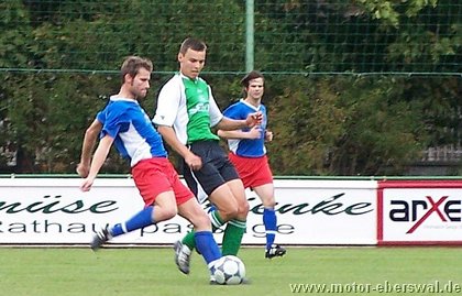 Die erste Halbzeit verlief ausgeglichen. Torchancen ergaben sich wenn, dann nur nach Standards. So kam Motors Tobias Schmidt nach einem Eckball von Matthias Schilling nicht richtig hinter den Ball und köpfte vorbei (5.) Sven Daniel hatte mit einem Kopfball die erste Gelegenheit der Gäste, verzog aber ebenfalls (6.). Ansonsten stand die von Falk Thormann organisierte Motor-Abwehr sicher. Vor allem der zweikampfstarke Rene Heinrich gab der Hintermannschaft viel Sicherheit.
