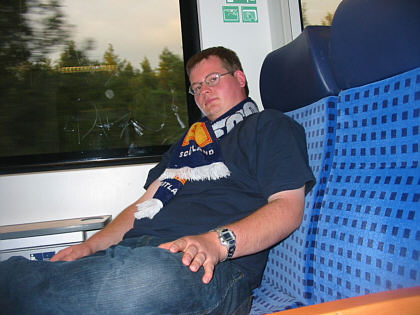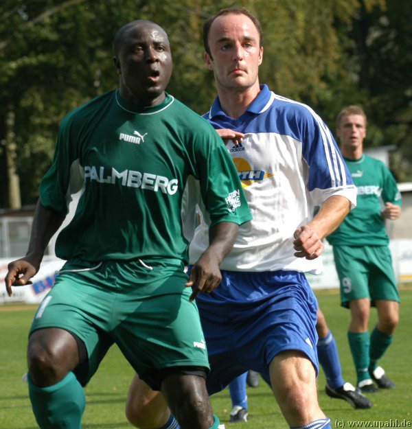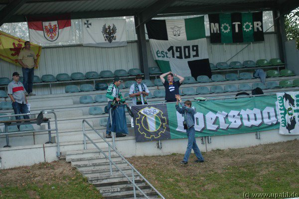 Die eigentliche Wende im Spiel schien dann ein fünfminütiger Platzregen zu sein der auf dem Spielfeld nieder ging. Jedenfalls kamen die vorher so ballsicheren Schönberger nun im wahrsten Sinne ins Rutschen und Motor begann mit schnellen Pässen auf die Aussenpositionen , die vornehmlich Mathias Schilling spielte richtig Druck zu machen. Einen solchen bekam Rafet Ates auf der linken Seite. Mit einem kurzen Antritt ließ er seinen Gegenspieler stehen und umspielte auch den heraustürzenden Torwart. Obwohl sein Schuss aus spitz gewordenem Winkel an den Pfosten ging, beförderte ihn ein nachsetzender Schönberger über die Linie. Nun schienen die Gastgeber regelrecht gelähmt , was sich noch steigerte als der Schönberger Radom nach wiederholten Fouls die Ampelkarte gezeigt bekam. Die nur noch auf die Defensive beschränkten Schönberger standen auschließlich am Sechzehner und hatten Glück, das bei einigen Pässen die Fahne des Linienrichters hoch ging. In der Offensive hatten sie nur noch eine letzte gefährliche Szene im restlichen Spiel, so veruchte Subali bei einem Konter , den vorm Tor stehenden Olaf Pospieszny mit einem Lupfer zu überlisten, der Ball flog jedoch im hohen Bogen aufs Tordach. Bei Motor kam das bis dahin so passive Mittelfeld um Frank Ploen und den eingewechselten Steffen Sasse richtig auf Touren und so rollte ein Angriff nach dem anderen auf die immer ängstlicher agierenden Schönberger zu. In der 78.Minute hätte Rafet Ates bereits den Ausgleich machen müssen, aber der von ihm unhaltbar am Fünfmeterraum abgefälschte Ball ging scharf daneben. Mehr Glück hatte er dann wenige Minuten später , als er wieder auf der linken Seite schnell in den Strafraum lief und aus spitzem Winkel in die kurze Ecke traf. Bezeichnend das genau zu diesem Zeitpunkt sich ein größerer Teil des Tribünenpublikums von den Sitzen erhob und den Nachhauseweg antrat. Torchancen ihrer Elf sollten sie auch nicht mehr verpassen, dafür eine Motor Mannschaft die begriffen hatte, das heute noch mehr drin war. In der 88. Minute nutzte dann Thomas Döhring einen Abstauber nach einem Schuss von Mathias Schilling und überwand den Schönberger Torwart aus Nahdistanz zur Motor Führung. Schönberg machte auch jetzt keinerlei Antalten mehr noch etwas zu ändern und so hielt Motor den Ball die restlichen Minuten noch gekonnt in der Schönberger Hälfte bis der Schiri mit dem Schlusspfiff die ersten Punkte der Saison perfekt machte.