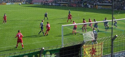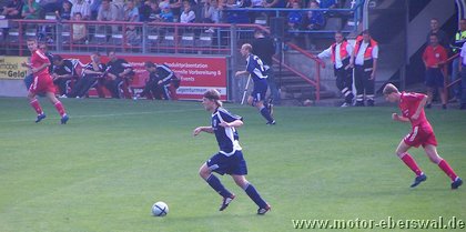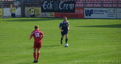 Motor musste beim Spiel in Babelsberg kurzfristig die komplette Innenverteidigung ersetzten, da sich Torsten Maerz und Mirko Rücker beim Abschlußtraining verletzt hatten. Während Rico Musick so Verteidiger spielte, machte René Heinrich aus der Landesligamannschaft sein erstes Oberligaspiel über die komplette Distanz. Das Spiel begann sehr schleppend und obwohl Babelsberg den Ball weitgehend kontrollierte liessen ihre Pässe zu Beginn noch zu wünschen übrig. Das eröffnete Motor erste Konterchancen, von denen Rafet Ates, nach Vorlage von Michél Jahn, eine im Alleingang mit einem Schuss aus spitzem Winkel zur Führung nutzte. Babelsberg zog nun das Tempo an und kam nach einer Flanke, die von der Motor Abwehr verpasst wurde zum Ausgleich, als Kristian Stelse den Ball, beim Versuch der Klärung vor einem einschussbereiten Babelsberger ins eigene Tor schoss. Danach legte Babelsberg zwar nach, zeigte sich jedoch vor allem beim Flügelspiel noch zu statisch, so das uhre Flankenläufe immer wieder geblockt werden konnten. Dennoch drängten sie Motor nun zusehends hinten rein, so das kaum noch Entlastung nach vorne kam. Selbst wenn sich Babelsberg mal einen Ballverlust leistete, gingen die Anspiele nun zumeist ins Leere. Bei einem Volleyschuss aus wenigen Metern hätte Babelsberg schon Führung gehen können, der Ball verfehlte jedoch knapp das Gehäuse. Die Führung dann wenige Minuten vor der Pause, als ein Freistoss von Tretschok unhaltbar von der Mauer abgefälscht wurde und sich in die Torecke senkte.