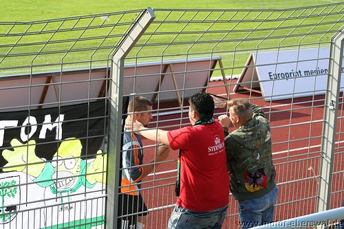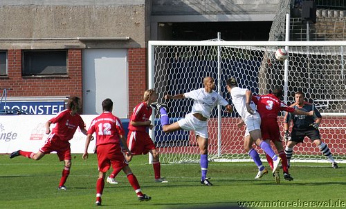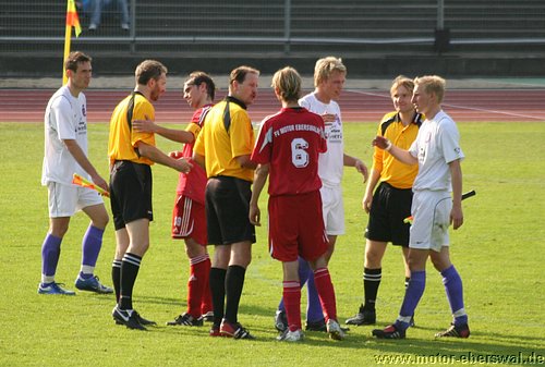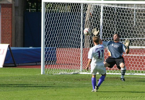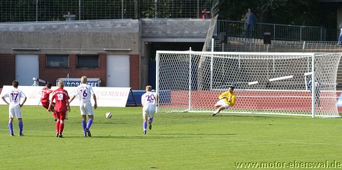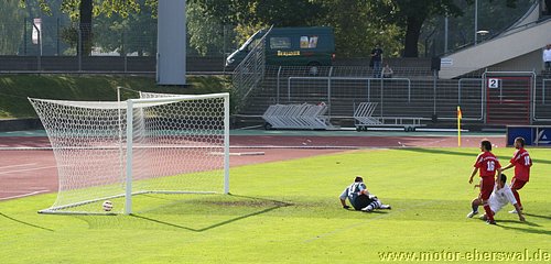 So spielte Motor im Mommsenstadion aus einer verstärkten Defensive heraus und schaffte es damit zunächt recht gut den Bemühungen der Tennis Borussen etwas entgegen zu setzten. Bei diesen war trotz balltechnischer Vorteile zum einen ein gewisser Hang zur Verspieltheit anzumerken, zum anderen schienen sie nicht so recht bereit zu sein gegen Motor ihr volles Können abzurufen. So zeigten Vuckovic und Savran mit einigen Dribblings zwar ihre Gefährlichkeit , als sie jeweils zwei Motor Spieler am Strafraum stehen liessen, vergaben dann aber im Abschluss eher kläglich. Motor versuchte es vor allem über den auf links spielenden Steffen Sasse nach vorne zu kommen, der jedoch Rafet Ates als Sturmspitze nur selten erreichte. So konnte zwar immer wieder für Entlastung gesorgt werden, auch weil man einige Ecken heraus holte. Zu echten Torchancen reichte es aber nicht. Auch Tebe schien erst nach einer halben Stunde ernst zu machen. So hatte Olaf Pospieszny bei einem Kopfball nach einer Ecke großes Glück, als er auf der Linie mit einem Reflex mit einer Hand halten konnte. In der 35.Minute stand der Motor Schlussmann wieder im Brennpunkt. Aber auch den Schuss von Petrowski aus bester Position konnte er mit einer Hand über das Gehäuse lenken. Dennoch hatte man von nun an das Gefühl, das das nicht lange gut gehen konnte und Tebe die Führung noch vor der Pause erzielen wollte. Dies gelang in der 38.Minute, als Kadow nach einer Ecke per Kopf traf. Tebe setzte sofort nach und erzwang mit einigen Angriffen über die Flügel weitere Standardsituationen, von denen sie erneut einen Eckball unmittelbar vor der Pause durch Vuckovic zum zweiten Treffer nutzten. Die zweite Halbzeit begann zunächst mit viel Leerlauf, auch weil die Berliner zunächst einen Gang zurückgeschaltet hatten und Motor einfach keine durchdachten Aktionen in die Hälfte der Tennis Borussen hinein brachte. Die Sturmspitzen hingen praktisch den gesammten zweiten Durchgang hinweg in der Luft, wärend die Abwehr den mit wenig Schwung agierenden Hausherren zwar ordentlich Widerstand entgegensetzte, nach einigen individuellen Patzern jedoch auch Glück hatte nicht sofort weitere Gegentreffer zu kassieren. So vergab Tebe nach einem Stockfehler von Felix Kalohn durch Kadow eine Großchance als der Berliner freistehend rechts vorbei Schoss. Kurz danach vergab ein anderer Berliner aus spitzem Winkel, eine ebenso gute Gelegeneheit. Der dritte Treffer gelang den Berlinern nach einem Patzer von Mirko Rücker auf der linken Abwehrseite und ermöglichte Lemcke mit wenig Mühe Olaf Pospieszny zu überwinden. Im Gegenzug konnte Motor, die jetzt mit drei Stürmern auf dem Platz standen einmal einen Angriff bis zum Strafraum hin ausspielen und Christian Schlegel wurde dort von seinem Gegenspieler unfair gehalten so das es einen Strafstoß für Motor gab, den Rafet Ates mit seinem ersten Saisontreffer sicher verwandelte. In der restlichen Spielzeit, hatte Motor jedoch offenbar nicht die Mittel noch einmal etwas zu versuchen und beschränkte sich auf weitere Schadensbegrenzung, was in dem mittlerweile an Standfußball erinnernden Spiel aus gelang. Tebe setzte in der Schlussphase noch zwei gefährliche Distanzschüsse an, welche jedoch übers Tor flogen, versuchte aber nicht mehr viel um das Spielergebnis in die Höhe zu treiben. Schwer zu sagen, ob gegen offensichtlich nicht mit letzten Einsatz spielende Berliner, mit einigen, der heute ausgefallenen Stammkräfte mehr drin gewesen wäre, es bleibt festzustellen, das in der Offensive weniger die Stürmer, sondern die Ideen und die Passgenauigkeit fehlt um eine technisch starke Mannschaft zu beschäftigen. Motor hat nun zwar in der Hinrunde alle Aufstiegsaspiranten durch, steht jedoch in den nächsten Spielen gegen Gegner mit anderen Saisonzielen auch wieder unter Druck, mit dem man hoffentlich umzugehen weis.