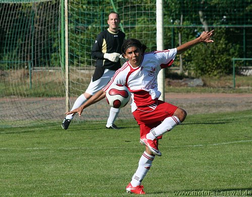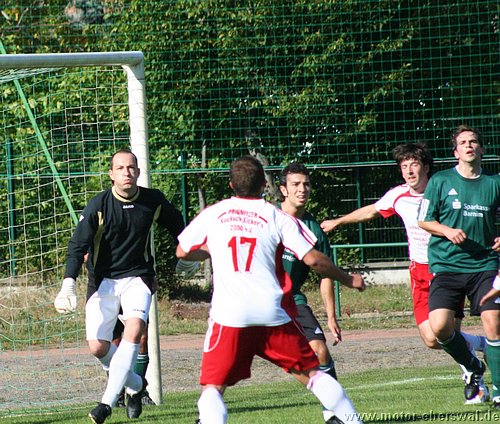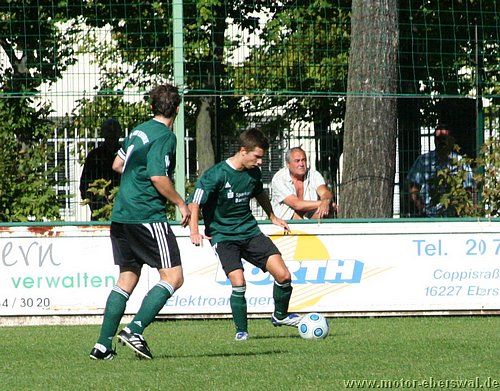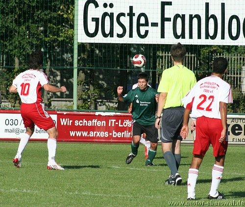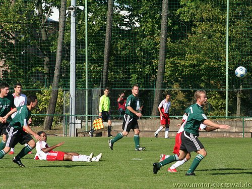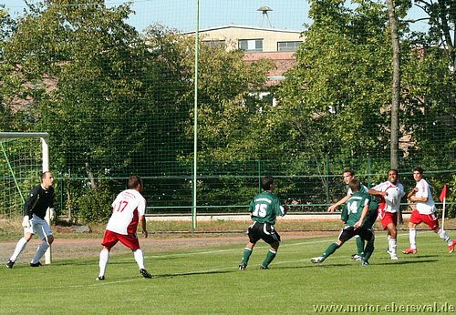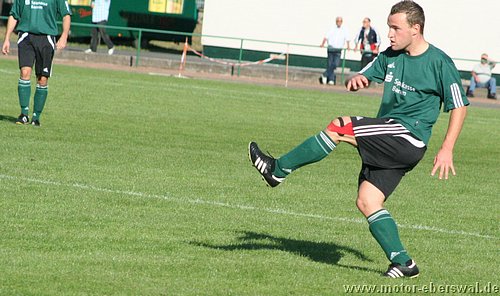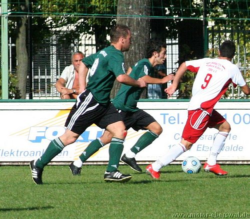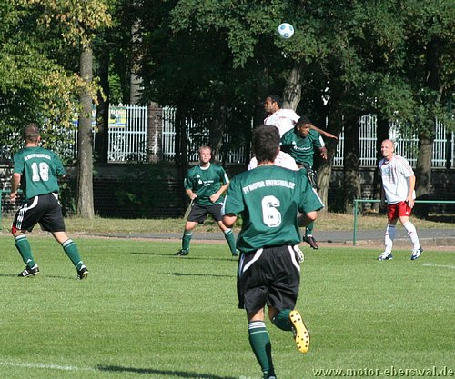 Mit einem behäbig defensiven Spiel war Motor den Gästen aus Kuckuck in der ersten Halbzeit hoffnungslos unterlegen und hatte trotz einiger Querschläger in der Abwehr zunächst Glück nicht in Rückstand zu geraten. Offensiv spielte man mit nur einer Spitze, José Hornemann, der aber zwischen drei Abwehrspielern völlig auf verlorenem Posten stand. Kuckuck spielte schnell bis zum Strafraum, zeigte sich dann aber zu kompliziert im Abspiel und versuchte mehrfach Strafstösse zu schinden. So auch in der 20.Minute, als der angeblich gefoulte dann noch gegen Kristian Stelse nachtrat, dafür vom Unparteiischen aber nur Gelb sah. Ansonsten das Spiel von wenigen Entlastungsangiffen nur in der Eberswalder Hälfte, so das sich die Führung der Gäste andeutete. Zunächst hielt Swen Lichtenberg noch mit einer starken Parade gegen einen frei vorm Tor stehenden Stürmer, der zuvor zwei Verteidiger überspielt hatte. Aber im nächten Spielzug sah er dann alt aus, als er bei einer langen Flanke durch den Strafraum zu spät kam und nach einem Kopfball zwei Gästestürmer vor dem leeren Tor standen. Die Abwehr trat auch nicht raus, so das das eigentlich unnötige Abspiel der beiden kein Abseits sein konnte. Der Ausgleich dann völlig aus den nichts unmittelbar vor der Pause. Ein Freistoss von der Strafraumgrenze von Christian Rauch wird an der Mauer unhaltbar abgefälscht. Zu Beginnd der zweiten Halbzeit Motor besser die Zweikämpfe annegmend und mit geradlinigerem Spiel über weniger Stationen und ohne unnötige Dreher, bei denen die Gäste sowieso deutlich besser waren. Das brachte dann auch promt zwei ganz dicke Torchancen. Zunächst durch Kristian Stelse nach einer Freistossflanke aus Nahdistanz, dann lässt Erik Klein, der völlig frei vor dem Tor steht (Abseitsfalle der Gäste versagte klassisch) die größte Gelegenheit aus, als er mit einem unplatierten Schuss genau auf den Keeper zielt. Das wars dann aber auch schon wieder von den Eberswaldern. Kuckuck nutzte einen verlorenen Zweikampf von Christian Rauch an der Mittellinie um einen Konter zu starten. Als der Motor Kapitän sich den Ball in einem harten aber fairen Zweikampf im Strafraum zurückholt (Ball deutlich gespielt und behauptet), gibt es zu einiger Überraschung Elfmeter für Kuckuck, der sicher verwandelt wird. Kuckuck spielte danach lässig auf Konter und Motor war vom Tempo und der Genauigkeit kaum in der Lage noch gefährliche Angriffe aufzuziehen. Erst recht nicht, als man nach einer umstrittenen Aktion im Mittelfeld in Unterzahl geriet. Sirko Neumann nimmt den Ball für einen für Feistoss auf, als sich der Gästespieler der daneben steht hinfallen lässt und schreit. Folge zweite Gelbe und damit Platzverweis. Zehn Minuten später Motor sogar nur noch zu neunt, als Ümit Ergin wegen eines nicht weiter auffälligen Fouls ebenfalls die Ampelkarte sah, allerdings war er vorher schon ermahnt gewesen. Kuckuck gelingt mit einem abgefälschten Schuss der dritte Treffer, so werden die letzten zehn Minuten reiner Antifußball, denn Kuckuck spielt sich den Ball zu und Motor steht zu neunt nur noch hinten drin. Dennoch gelingt Kuckuck bei ihrem letzten schnellen Spielzug über die linke Seite aus spitzen Winkel noch der vierte Treffer. Motors erste Saisonniederlage damit auch in der Höhe verdient, auch wenn die Flut an gelben Karten und die einseitige Spielleitung des Schiedsrichters diesem völlig fairen Spiel in keiner Weise angemessen waren.