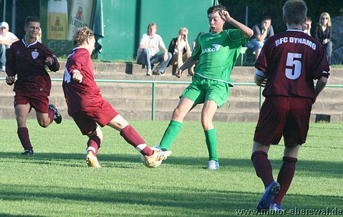 Gegen den Berliner B-Jugend Verbandsligisten BFC Dynamo spielte Motor eine starke Anfangsphase und ging durch Kevin Brandt in der 8.Minute durch einen Schuss aus spitzem Winkel in Führung. Danach versäumte man es mit mehreren Chancen nachzulegen. Zumeist wurde zu überhastet abgeschlossen. Die Berliner kamen durch einen verlorenen Ball in Motors Vorwärtsbewegung durch einen Heber zum Ausgleich. Bis zur Pause gewannen sie immer mehr Spielanteile, wobei sie von vielen Fehlpässen der Eberswalder profitierten. Das setzte sich auch in der zweiten Hälfte fort, die weitgehend von den Berlinern bestimmt wurde. Vor allem über Hardy Egbert kam auf er linken Seite etwas Entlastung ohne das es noch zu klren Torchancen reichte. Die hatte der BFC Dynamo reichlich, zielte aber aus allen Positionen daneben. Dennoch war der Rückstand nur eine Frage der Zeit. Die Tore zum Endstand fielen erst spät. In der 71.Minute führte ein fataler Ballverlust im eigenen Strafraum dazu das ein Stürmer den Ball an die Lattenunterkante schoss von wo der Ball ins Tor sprang. Als Motor einen Ball auf der rechten Abwehrseite nicht klären konnte, schnappte sich ein Stürmer den Ball, legte ihn in die Mitte ab, von wo sein Kollege unbedrängt einschob.