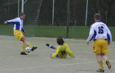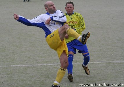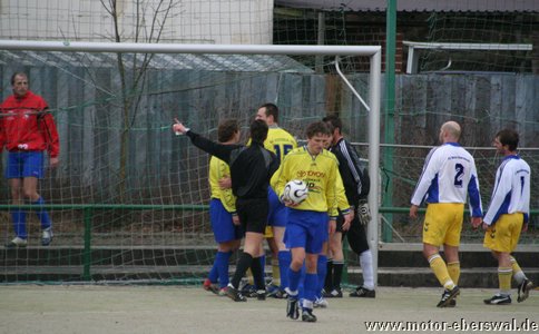 Nach einer ereignislosen Anfangsphase, in der beide Mannschaften kaum Torgefahr ausstrahlen konnten, übernahm Motor mehr und mehr das Geschehen auf dem Platz und setzte Akzente im Spiel nach vorne. Das erste Achtungszeichen setzte Schilling, dessen Volleyabnahme nur knapp das Victoria-Gehäuse verfehlte (16.). In der 19. Spielminute ging Motor II in Führung, als „Schlitzohr“ Schilling den Templin Keeper mit einem kuriosen Freistoßtor überlistete: 1:0 (19.). In der Folgezeit agierten die Waldstädter, die sich in der Templin Hälfte festsetzten, deutlich überlegen und dominierten jederzeit das Geschehen. So scheiterten Krause und Neuman aus aussichtsreichen Positionen (29. / 31.). Als Spielgestalter Schilling Teamkollege Scheunert mit einer Freistoßvorlage herrlich in Szene setzte stand es bereits 2:0 für die Hausherren (35.). Unmittelbar vor der Pause erhöhte Motor II auf 3:0, als Barczyk nach einer starken Einzelleistung dem Victoria-Schlussmann keine Chance ließ und überlegt einschob (44.). Motor II bot in Hälfte eins eine starke Vorstellung und ließ Templin kaum zur Entfaltung kommen, so dass der 3:0-Halbzeitstand hoch verdient war. In der zweiten Hälfte konnte Motor II allerdings nicht mehr an den starken ersten Durchgang anknüpfen, so dass die immer stärker werdenden Templiner das Heft in die Hand nahmen. In der 52. Minute verkürzten die Uckermärker auf 3:1, als Carsten Fähling einen stark hervor getragener Konter erfolgreich abschloss. Anschließend setzte Templin dem FV stark unter Druck, der sich jedoch mit viel Glück und Geschick immer wieder lösen konnte und durch schnelles Umschalten von Abwehr auf Angriff torgefährlich blieb. So scheiterte Silz mit einem Volleyschuss, den der Keeper parierte, und Prost, dessen Schuss von der Victoria-Defensive abgeblockt wurde (60. / 68.). Dennoch wirkte Motor in dieser Phase K.O, da Templin deutlich mehr Spielanteile besaß und die Eberswalder dadurch immer wieder unter Druck gerieten. Scheiterte Victoria in der 67. Spielminute noch mit einem Torschuss, der nur knapp am Tor vorbei ging, so machte es der Gast nur zehn Minuten später besser, als Matthias Bock zum 3:2-Anschlusstreffer traf (77.). Somit entwickelte sich eine spannende Schlussphase, in der beide Mannschaften ihre letzten Kraftreserven mobilisierten. Zunächst vergab Templin die Riesenchance zum Ausgleich, als sich Motor-Keeper Peters reaktionsschnell präsentierte (82.). Im direkten Gegenzug traf Barczyk mit seinem zweiten Tor zum 4:2, als er im Templin-Strafraum gleich zwei Gegenspieler düpierte (83.). Als Toralf Krause nach Vorlage von Prost zum 5:2 traf, war die Partie endgültig entschieden (88.). Templin verkürzte zwar nur eine Minute später durch Carsten Fähling auf 5:3 (89.), konnte den Sieg der Motor-Mannschaft jedoch nicht gefährden, die somit auf dem dritten Platz der Landesklasse Nord überwintert.
