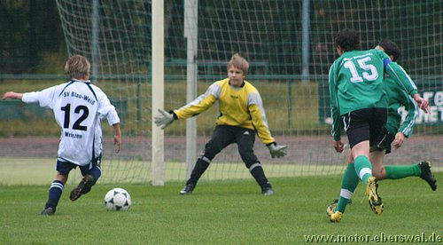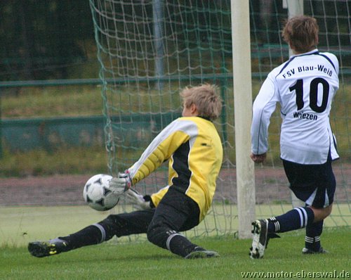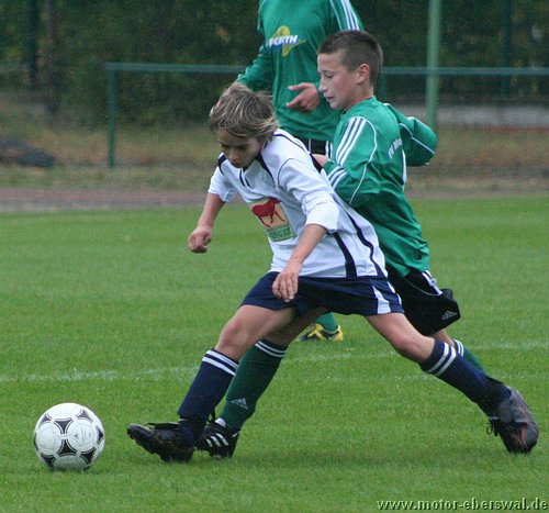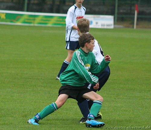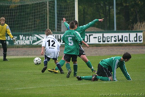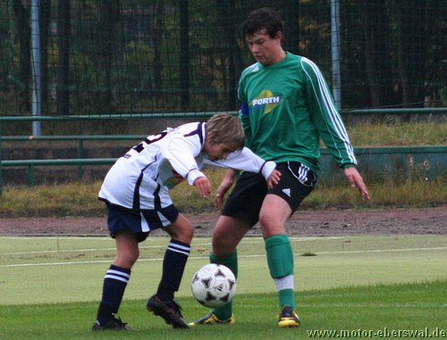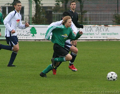 Die C-Junioren des FV Motor Eberswalde trafen am Samstag auf den Tabellenletzten der Landesklasse Ost, den FSV Wriezen. Die Motoraner begannen schwungvoll und hätten bereits in der 2. Spielminute in Führung gehen können. Der Schuss von Paul Schuster verfehlte das Tor nur knapp. Eine Minute später bekam Kenny Ladewig den Ball genau in den Lauf gespielt und musste nur noch den Wriezener Keeper überlisten. Dies gelang ihm. Überlegt schoss er Motor mit 1:0 in Führung. Die Wriezener schienen nun wach geworden zu sein und kamen besser ins Spiel. Sie setzten Motor unter Druck und zeigten schönen Kombinationsfußball. Glück für Motor, dass die Wriezener ihre Chancen nicht nutzen konnten. Sie waren dem Ausgleich näher, als Motor dem 2:0. Wie bereits in den vergangenen Spielen gab es auf Motorseite Probleme mit den Abschlägen vom Tor. Die gegnerischen Mittelfeldspieler konnten teilweise ungehindert den Ball annehmen und so ihr gefährliches Konterspiel aufziehen. So geriet Motor immer wieder in brenzlige Situationen. Oft half nur ein Befreiungsschlag in letzter Not. Motorkeeper, Julius Giebel, konnte sich zu diesem Zeitpunkt über Langeweile nicht beklagen. In der 21. Spielminute gab es endlich mal wieder Gefahr im Strafraum der Wriezener. Lennart Keller brachte den Ball Richtung Tor, Dominik Adam bekam ihn freistehend; doch anstatt selbst abzuschließen, legte er den Ball noch quer auf Kenny Ladewig. Bis dieser zum Schuss kam, war ein gegnerischer Spieler dazwischen. So vergab man leichtfertig hundertprozentige Chancen. Die Wriezener agierten weiterhin zweikampfstärker und ließen Motor nicht ins Spiel kommen. Kurz vor der Halbzeitpause nahm der FSV Wriezen das Tempo etwas heraus. Dies nutzten die Motoraner eiskalt aus. In der 31. Minute wirkten die Wriezener etwas unsortiert in der Abwehr. Kenny Ladewig schloss einen schnell vorgetragenen Konter mit dem 2. Tor ab. Nur 2 Minuten später legte Marcus Pahl nach. Er erhöhte durch einen Freistoss auf 3:0. Mit diesem Ergebnis ging es in die Halbzeitpause.