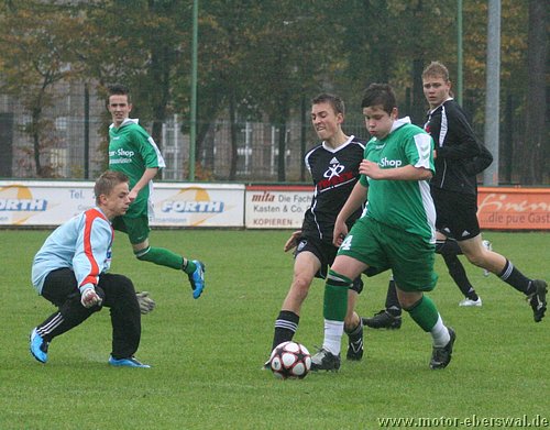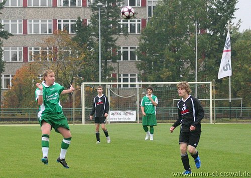 So richtig wissen die B-Junioren nach den Spielen gegen die letzten beiden Gegner immer noch nicht wo sie stehen. Denn nach den schwachen Altlandbergern kam mit Ahrensfelde in Gegner ins Westendstadion, der nie mithalten konnte und eher noch schwächer war. Da ärgerte es Trainer Dietze in der Anfangsphase entsprechend, das reichlich klare Gelegenheiten unnötig verstolpert wurden und es eigentlich viel zu lange torlos blieb. Chris Zimmermann gelang erst in der 23.Minute die Führung, die so klar herausgespielt war, das er nicht mehr vergeben konnte. Sein Sturmpartner Christoph Nehring der zuvor mehrfach unglücklich vor dem Tor agiert hatte machte den zweiten Treffer noch vor der Pause dann souverän mit einem Heber. Ahrensfelde hatte zwar wenige Entlastungsangriffe, war aber nie zwingend vor dem Tor. Im zweiten Abschnitt gelang Motor dann ein starker Einstand, als Chris Zimmermann gleich seine zwei ersten Gelegenheiten nutzte. Die Ahrensfelder liessen nun auch im Einsatz deutlich nach und so gab es kein Halten mehr. Zunächst vollendete Chris Zimmermann seinem Hattrick, dann schoss Marcel Glöck zwei durchaus nicht einfach zu erzielenden Treffer. Auch Kapitän Paul Kallies, der bis dahin im defensiven und damit beschäftigungslosen Mittelfeld spielte, schaltete sich nun vorne ein und vollendete nach einem langen Pass mit einem sehenswerten Heber. Gleich danach traf er noch per Kopf nach einer Ecke. Erst als Chris Zimmermann das Ergebnis zweistellig gemacht hatte, war nochmal was vom Gegner zu sehen. Ein Schuss vom inkonsequent gestörten Stürmer gab Torwart Eddy Fischer noch die Gelegenheit sich mit einer Flugparade auszuzeichnen. Mit der letzten Aktion im Spiel fiel dann sogar noch der elfte Treffer. In der zweiten Halbzeit sicher viel zu einseitiges Spiel, aber auch Ansporn aus dieser Liga aufzusteigen um wieder wirklich zeigen zu können was man kann.