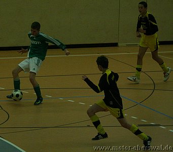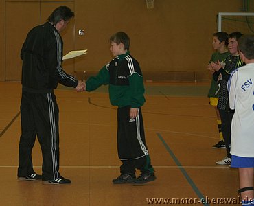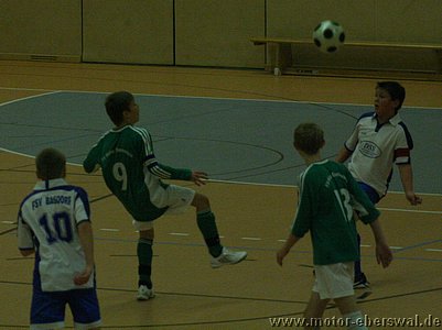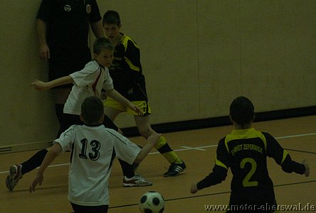 Neben den gesetzten Landesligisten FSV Bernau, FSV Basdorf und Motor Eberswalde I qualifizierten sich die drei besten Mannschaften der Kreismeisterschaftsendrunde (Einheit Zepernick, SV Lichterfelde und Motor Eberswalde II) für die Vorrunde. Bereits im ersten Turnierspiel kam es zum Duell zweier Mitfavoriten auf den Turniersieg, dem FSV Bernau und FSV Basdorf, welches die Hussitenstädter mit einem klaren 4:0 – Erfolg deutlich für sich entschieden. Anschließend unterstrich der Kreismeister Einheit Zepernick beim 5:0 – Sieg gegen „Vize“ SV Lichterfelde eindrucksvoll seine derzeit gute Hallenform. Im vereinsinternen Motor – Duell setzte sich die erste Vertretung erwartungsgemäß mit 6:0 gegen Motor II durch und verbuchte somit einen erfolgreichen Start ins Turnier. Anschließend lieferte sich Bernau und Einheit Zepernick ein packendes Match, in dem die Panketaler überraschend, aber nicht unverdient ein 2:2 – Remis erreichten. Dann trafen die beiden Landesligisten aus Basdorf und Eberswalde aufeinander und Motor verwies den FSV beim 5:0 – Erfolg deutlich in die Schranken. Im nächsten Turnierspiel agierte Motor II und Lichterfelde zwar gleichwertig, die Schorfheider erwiesen sich jedoch bei der Chancenverwertung effizienter und gewannen am Ende mit 2:0. Dann kam es zur Spitzenbegegnung zwischen dem FSV Bernau und Motor Eberswalde I. Mit einer von beginn an spielerisch starken Vorstellung übernahm der FV sofort das Geschehen auf dem Parkett und ging frühzeitig mit 2:0 in Führung. Bernau gab sich jedoch nicht geschlagen und der treffsichere FSV – Akteur Toni Manske verkürzte kurze Zeit später auf 2:1. Doch als Nick Lange und Keeper Markus Lanzrath mit zwei weiteren Toren den FV Motor mit 4:1 in front brachten, war die Partie entschieden und die Eberswalder schlugen den Mitfavoriten Bernau nach einer tollen Leistung. Der FSV Bernau dagegen war nun auf Schützenhilfe der anderen Teams angewiesen und hatte nur noch theoretische Chancen auf die Qualifikation. Da die SG Einheit Zepernick auch sein Spiel gegen Motor II (3:1) gewann, blieben die Niederbarnimer weiter im Rennen und trafen in der nächsten Begegnung auf Motor Eberswalde, die sich mit einem Sieg bereits vorzeitig für die Zwischenrunde qualifizieren konnten. Der FV ließ von beginn an nichts anbrennen, beherrschte die Partie und lag nach Toren von Lange, Gausepohl und Adam bereits frühzeitig mit 3:0 in Front. Der Gegentreffer zum 3:1 kurz vor Schluss war nur noch Ergebniskosmetik und der FV Motor Eberswalde qualifizierte sich somit hoch verdient für die Zwischenrunde der Hallenlandesmeisterschaften. In den restlichen Partien ging es somit für die anderen Teams nur noch um die Endplatzierung. Trotz einer 3:1 – Niederlage gegen den FSV Basdorf sicherte sich Einheit Zepernick den zweiten Platz, da der am ende etwas enttäuschende FSV Bernau auch gegen Motor II mit 2:1 verlor und somit nur auf Rang drei landete. Lichterfelde holte gegen den bereits feststehenden Turniersieger Motor Eberswalde I beim 1:1 – Remis einen überraschenden Punktgewinn und belegte am Ende rang vier. Motor Eberswalde II gewann die letzten beiden Partien gegen die Landesligisten aus Basdorf und Bernau (5:2 und 2:1) und rangierte in der Endabrechnung auf rang fünf. Dem etwas glücklos agierenden FSV Basdorf gelang im letzten Spiel beim 3:1 – Erfolg gegen Zepernick der erste Sieg, womit die Basdorfer das Turnier zwar als Letzter beendeten, ihnen jedoch ein versöhnlicher Abschluss gelang. Motor Eberswalde vertritt den Fußballkreis Barnim am 24.01.2008 in Petershagen bei der Zwischenrunde der Hallenlandesmeisterschaft und hat sich die Endrundenqualifikation als Ziel gesetzt.