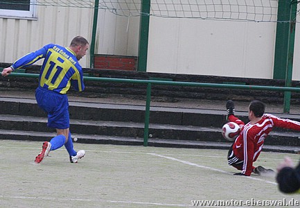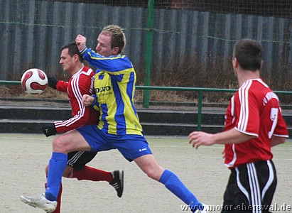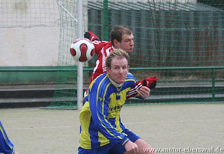 Motor verliert das Nachholspiel gegen Guben Nord auf dem Kunstrasenplatz des Westendstadions und muss sich weiter auf engen Abstiegskampf einstellen. Ein böiger und starker Wind lies von Anfang an zwei unglleiche Halbzeiten erwarten, bei denen Motor die Briese zuerst ins Gesicht blasen sollte. Die Lausitzer übernahmen sofort die Innitiative und Motor sah praktisch in der Offensive keinen Stich. Zwar wurde hinten alles eng gemacht, dennoch bedeuteten Ballverluste in mehreren Situationen höchste Torgefahr. Guben erhielt nach einem unstrittenen Handspiel von Rico Musick am rechten Strafraumeck einen Elfmeter, der sicher verwandelt wurde. Motor verlor danach sichtbar die bis dahin gezeigte Konzentration und so war Guben dem zweiten Treffer näher als Motor, das nun mehr Risiko ging einem ersten. Dieser zweite Gegentreffer fiel dann durch einen krassen Stellungsfehler im Abwehrzentrum und ermöglichte dem Stürmer in der Mitte frei durchzukommen und sich die Ecke auszusuchen. Die wenigen Offensivaktionen der Eberswalder in der ersten Halbzeit kamen erst nach diesem Rückstand zu stande. Steffen Sasse mit einem verdeckten Schuss von der Strafraumgrenze rechts einen halben Meter vorbei und André Germer über halbrechts durch , scheitert am kurzen Eck aber am Keeper. Mit Rückenwind lies sich die zweite Hälfte dann deutlich besser an. Eine Staffette über Michael Prost und Ümit Ergin und schloss Steffen Sasse schon kurz nach der Pause mit dem Anschlusstor ab. Auch danach wurde nun druckvoller gespielt und das Bild der ersten Halbzeit kehrte sich komplett um. Nach einer Ecke von Steffen Sasse köpfte Wojchech Gregula schon vier Minuten später den Ausgleich. Danach wurde versäumt mit dem selben Schwung nach vorne zu spielen. Stattdessen brachte man sich erneut durch Ball- und Zweikampfverluste ins Hintertreffen. Der Gegner der Zwischendurch durch die schnellen Tore und eine Verletzung eines Spielers angeknockt schien, war bald wieder bissiger in den Zweikämpfen und konnte (diesmal trotz Wind), das Spiel vor den Eberswalder Kasten tragen. Eine unglückliche Situation , bei der Swen Lichtenberg einen Tick zu spät aus dem Tor kam und dann vom Stürmer überlupft wurde führte zur erneuten Führung der Gäste. Motor nun wieder gezwungen alles zu riskieren hatte allerdings noch reichlich Chancen wenigstens einen Zähler zu behalten. Mehrere Freistöße von Rico Musick und Steffen Sasse, je eine Großchance von Michael Prost und Ümit Ergin und in der Allerletzten Minute der Nachspielzeit die klarste Gelegenheit als Eric Brien freistehend vor dem Tor sich nicht für eine Ecke entscheiden konnte sondern den Keeper anschoss, verhinderte dann allerdings den Teilerfolg. Nach der leichten tabellarischen Entspannung nach Abmeldung der Kuckuck Kickers ist man nun wieder voll im Abstiegskampf, zumal bei der derzeiten Lage in der Oberliga im ungünstigsten Fall sogar noch zwei Plätze mehr den Abgang bedeuten können.
