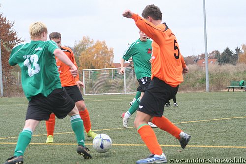Auf dem kleinen, aber gut zu bespielenden Kunstrasenplatz begann Motor überlegen und setzte von beginn an Akzente im Offensivspiel. In der ersten halben Stunde erspielte sich der FV drei Großchancen, doch Fliegel (2) und Silz scheiterten am gut parierenden SV – Keeper oder ihre Torgelegenheiten gingen knapp am Tor vorbei. Als Pawel Bastian im Ahrensfelder Strafraum gefoult wurde, entschied der Unparteiische auf Foulelfmeter, den Sebastian Nähring sicher zur 1:0-Führung verwandelte (32.). Doch die Freude auf Seiten der Eberswalder wehrte nicht lange, da Ahrensfelde nur drei Minuten später ausgleichen konnte, als Litka im Motor – Tor eine Hereingabe unterschätze und ein Grün-Weiß – Akteur im Nachschuss zum Ausgleich traf, der auch gleichzeitig den Halbzeitstand bedeutete (35.).