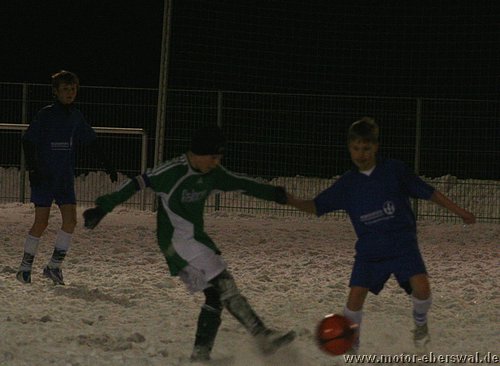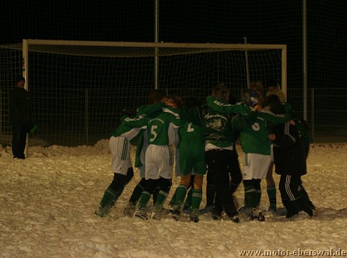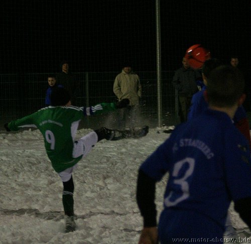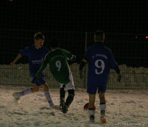 Auf einem verschneiten Kunstrasenplatz in Strausberg stand das Nachhospiel im Pokal an. Da der Boden kein technisch feines Spiel zulies wurde mit einfachen Mitteln gespielt und das machte den Kindern auch sichtlich Spaß. Motor ging in der 5.Minute durch Paul Schuster in Führung, die aber von den Strausbergern sofort ausgeglichen werden konnte. Motor etwas sicherer auf dem Schneeboden kam öfter an das gegnerische Tor heran und erneut Paul Schuster staubte einen liegengebliebenen Ball zum 2:1 ab. In der 20.Minute erhöhte Domenick Adam mit einem Fernschuss auf 3:1, was auch der Pausenstand blieb. Nach dem Wechsel durte bei Motor praktisch jeder mal treffen. Wobei es sich bei den meisten Toren um Abstauber im zweiten Anlauf handelte. Durch Lennart Keller und Jerome Ziethen ehöhte man auf 6:1, als Strauberg mit einem ihrer wenigen Angriffe der zweite Treffer gelang. Wirklich spannend wurde es dadurch nicht mehr, denn Nick Lange, Domenick Adam und Florian Heise trafen in schneller Folge ehe ein Eigentor der Strausberger das 10:2 bedeutete. Zwei Minuten vor dem Abpfiff setzte Eirik Fink mit dem elften Tor den Schlußpunkt.