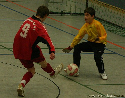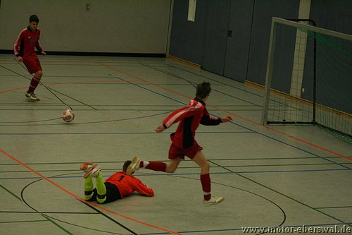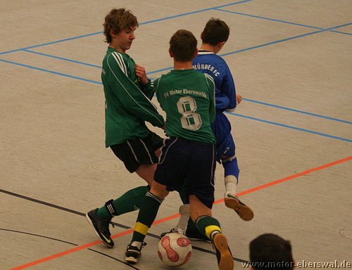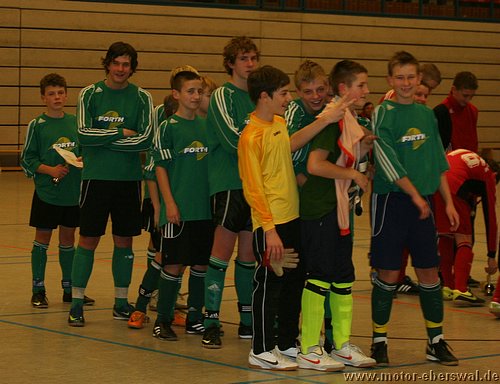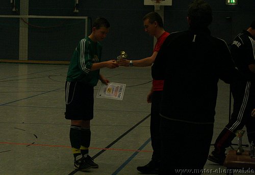 Beim C-Junioren Turnier in Schwedt konnte sich Motor am Ende nur hinter die Favoriten einreihen, auch weil am Ende der Runde 'Jeder gegen Jeden' sichtlich die Kraft weg war. Motor stieg als letztes Team ins Turnier ein und hatte gleich den vermeintlich leichtesten Gegner. Der Angermünder FC, der im ersten Spiel gegen Frankfurt/O schon klar unterlegen war, geriet auch gegen Motor durch Nick Lange (2x) und Domenick Adam mit 0:3 in Rückstand. Danach liessen die Eberswalder aber die Zügel schleifen und Angermünde erzielte den Anschlusstreffer. Danach bauten Kenny Ladewig und Lennart Keller den Vorsprung auf 5:1 aus. Dennoch vertendelte man bis zum Schluss noch so manchen Ball und fing sich zwei unnötige Gegentore zum 5:3. Das zweite Spiel ging dann gegen den Favoriten Union Berlin, der zuvor gegen Frankfurt/O knapp gewonnen hatte. Die Berliner bestimmten die ersten Minuten, waren sich aber ihrer Überlegenheit zu sicher und zeigten sich vom konsequenten Zweikampfverhalten der Eberswalder beeindruckt. So konnte Nick Lange den ersten Konter zu Führung abschliessen. Union spielte nun sehr kompliziert und vergab durch seine Torchancen durch unkonzentrierten Abschluss, zudem erkämpften sich die Eberswalder in der Mitte schnell die Bälle und zeigten mehr Zug zum Tor. Als Paul Schuster von halblinks einen Ball aufs Tor schoss, stoppte diesen ein Berliner mit der Hand, worauf es Neunmeter gab. Diesen schoss Domenick Adam allerdings vorbei. Dennoch setzte Motor sein Spiel fort und mit dem nächsten Angriff erzielte Nick Lange mit einem verdeckten Schuss das 2:0. Aber wie schon im ersten Spiel verhielt man sich in der Schlussphase nicht clever genug. So wurde nun gegen die Berliner, denen immer weniger einfiel zu weit auf gemacht, was diesen in der vorletzten Minute den Anschlusstreffer brachte. Auch beim Ausgleich 14 Sekunden vor Schluss hatte man zuvor zu sehr aufgerückt, so das nur ein Punkt hängen blieb. Immerhin gelang es im Turnierverlauf aber nur Motor Eberswalde gegen Union unbesiegt zu bleiben. Im dritten Spiel war man dann schnell wieder auf dem Boden der Realität, denn Greifswald II ging schnell mit 1:0 in Führung. Die kleinere Greifwalder Vertretung zeigte sich wendiger und hatte auch die bessere Übersicht gegen die vor allem die nun häufig eingesetzte 'zweite Reihe' der Eberswalder wenig zu stande brachte. Nach dem 2:0 der Vorpommern schien das Spiel entschieden. Zwar rollte noch ein verdeckter Schuss von Lennart Keller ins gegnerische Tor. Die Aufholjagt in der Schlussminute blieb ohne Erfolg. Greifswald machte mit einem Schuss ins leere Tor alles klar. Gegen den FC Schwedt war man im nächsten Spiel zunächst bestimmend und machte durch zwei schnelle Tore die Fürhung die auch nach zwei Anschlusstreffern jeweils wieder hergestellt werden konnte. Doch einmal mehr verpennte man die Schlussminute. Als die einen Spieler zu sehr nach dem persönlichen Torerfolg schielten und andere hinten nicht nach kamen. Auch diesmal musste man Sekunden vor Schluss noch den Ausgleich hinnehmen. Damit hatte man was den weiteren Turnierverlauf anging nichts mehr zu bestellen. Denn man war sowohl von den zwei dahinter platzierten Teams nicht mehr einzuholen, konnte aber auch nicht mehr weiter nach vorne kommen. Entsprechend lust- und kraftlos wurden dann auch die Vergleiche gegen Frankfurt/O (0:4) und Greifswald I (1:8) abgehakt.