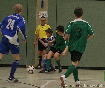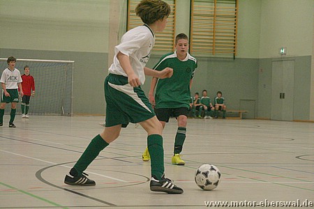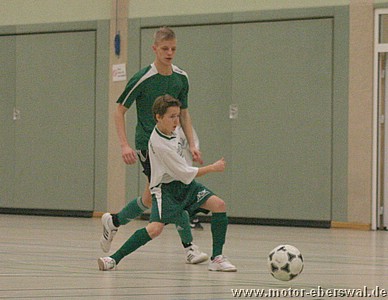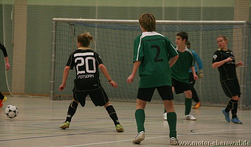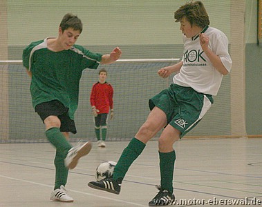 Die C-Junioren verpassen in Petershagen die Qualifikation zur Hallenlandesmeisterschaft. Mit drei Brandenburgligisten und dem Kreismeister MOL , war man als Kreismeister Barnims in vier Spielen voll gefordert. Der erste Gegner war am schwersten einzuschätzen, die Mädchen von Turbine Potsdam. Motor fand gut ins Spiel und ging durch Nick Lange in Führung. Hatte danach das Spiel sogar im Griff. Ein Stellungsfehler eröffnete aber Turbine ein Konterchance zum Ausgleich. Nach einem Eckball lag man vier Minuten vor dem Ende sogar zurück. Als die Zeit bereits knapp wurde, kam man noch zum Ausgleich durch einen Heber von Domenick Adam. Im zweiten Spiel ging es gegen den Turnierfavoriten Babelsberg 03. Schon nach der ersten Aktion lag man zurück und hatte gleich mehrere weitere Großchancen der Potsdamer zu überstehen. Überrraschend wurde dann aber doch eine Chance zum Ausgleich durch Nick Lange genutzt. Diese konterte Babelsberg aber sofort zur erneuten Führung. Als sie auch noch den dritten Treffer machten schien das Spiel gelaufen. Aber Motor lieferte dann noch eine sehenswerte Aufholjagd. Zunächst gelang Nick Lange der Anschlusstreffer drei Minuten vor dem Ende, dann musste Eirik Finck nach einem Foul zwei Strafminuten nehmen. Diese Überzahl wurde von Babelsberg zum vierten Treffer genutzt. Aber selbst jetzt wars noch nicht entschieden, denn Jan Smolka verkürzte eine halbe Minute vor dem Ende nochmal auf 3:4, dabei blieb es dann allerdings auch am Ende. Mit diesen Ergebnissen war das ursrüngliche Ziel, einer Qualifikation zur Landesmeisterschaft nicht mehr zu erreichen und so fehlte im dritten Spiel gegen Teltow-Kleinmachnow auch oft die Konzentration. Die konterstarken Gegner gingen früh in Führung und bauten diese aus. Motor vergab mehrere beste Schusspositionen, kam durch Paul Schuster zum Anschlusstreffer und drängte auf den Ausgleich. Ballverluste in der eigenen Abwehr nutzte der Gegner aber zu zwei weiteren Toren, erst mit dem Schlusspfiff gelang Nick Lange noch das 3:4. Im letzten Spiel wurden überwiegend Spieler der zweiten Reihe eingesetzt um ihnen auch ihre Chance zu geben. Diese kämpften gegen Seelow redlich, konnten sich aber vor allem in der Offensive nicht so durchsetzen. Dennoch konnte nach klarem Rückstand am Ende das Ergebnis mit 2:4 noch erträglich gestaltet werden.