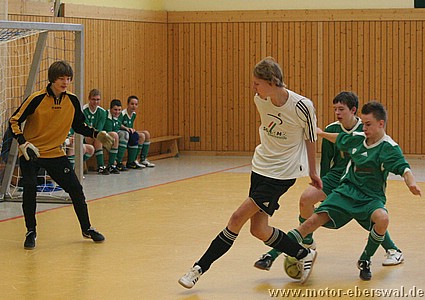 Bei der Endrunde in Basdorf wurde die Spielgemeinschaft Lok/Motor am Ende Zweiter. Die Fünferrunde 'Jeder gegen Jeden' begann man gegen Ahrensfelde von Beginn an hoch überlegen. Das 5:0 stand schon nach der Hälfte der zwölf minütigen Spielzeit. Philip Heinrich schoss alleine vier Treffer. Im zweiten Spiel war es wesentlich schwerer, denn Zepernick ging mit dem ersten Angriff in Führung. Danach tat man sich schwer ans Tor ran zu kommen. Erst ein Doppelschlag stellte die Weichen für den Herbstmeister. Obwohl man danach genug Gelegenheiten hatte den Sack zuzumachen, wurde die Führung kurz vor Schluss unnötig vertendelt und man kassierte noch den Ausgleich. Der liegen gelassene Punkt setzte da Team gegen Werneuchen unter Zugzwang. Zumal man Alexandros Veznikas und Phlip Heinrich verletzungsbedingt ersetzen musste. Dennoch zeigte man sich in diesem Spiel souverän und gewann 4:1. So lief es am Ende auf das zu erwartende Endspiel gegen Bernau heraus, in dem man gewinnen musste, dem Gegner reichte ein Remis. Entsprechend druckvoll wurde begonnen und es gelang die schnelle Führung. Nachlässigkeiten in der Defensive waren jedoch gegen die spielerisch ebenbürtigen Bernauer nicht zu übersehen. Nach einigen Glanzparaden musste Torwart Eddy Fischer doch zwei Gegentore hinnehmen. In den letzten Minuten stürmte man dann mit vollem Risiko nach vorne. Kenny Ladewig scheiterte jedoch in der letzten Minute noch am Innenpfosten. Den Gegenzug konnte Bernau mit dem dritten Tor zur Entscheidung nutzen.