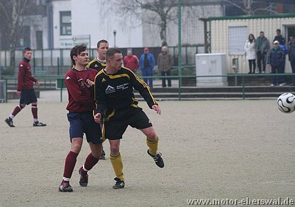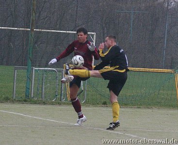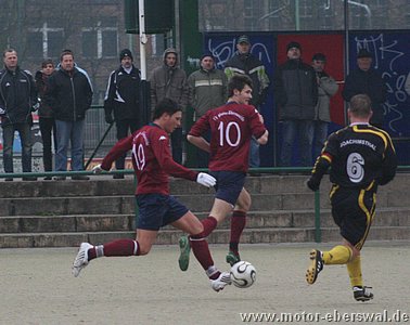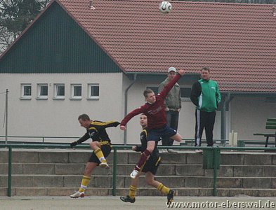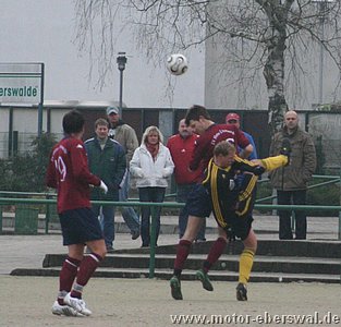 Déjá-vu bei Motor II in der Anfangsphase, auch gegen Joachimsthal fängt man sich in den ersten zwei Minuten zwei Gegentore und kommt nicht vollzählig aus dem Spiel. Was gegen Templin noch gebogen werden konnte, nahm diesmal seinen eigentlich anzunehmenden Verlauf. Wieder führte der erste Angriff des Gegners zum Gegentor, als der Ball von der linken Grundinie halbhoch vors Tor geschlagen wurde drückte ihn Stefan Silz unhaltbar ins Tor. Die Verwirrung in der Hintermannschaft war auch eine Minute später deutlich zu merken, als ein zweimal abgewehrter Ball vor die Füße des Joachimsthalers Hertz fiel und die Motor Abwehr dies offensichtlich gar nicht mit bekam, denn dieser konnte unbedrängt am kurzen Pfosten verwandeln. Joachimsthal konnte nun einen Gang raus nehmen, was Motor II zwar mehr Spielanteile bescherte, aber nicht zu Torchancen führte. Die vielen Spielunterbrechungen liessen wenigs Spielfluss zu, so das nur Standardsituationen Gefahr in die Strafräume brachten. Da war Joachimsthal immer noch konsequenter und hatte mit zwei Kontern den dritten Treffer auf dem Fuß. Dieser gelang dann in der 14.Minute mit einem Freistoss aus 25 Metern. Motor II hatte keine Mauer gestellt und der Ball ging genau in den Winkel. Eigentlich erst nach diesem Rückstand fanden die Eberswalder ins Spiel und konnte vor dem Kasten der Gäste Druck aufbauen auch wenn Tobias Marz und Erik Klatt aus guten Positionen verzogen. Nachdem kurz zuvor schon ein vermeintlicher Treffer abgepfiffen worden war, gab es beim 1:3 nach einem Eckball Diskussionen. Denn der Schütze Tobias Marz prallte mit dem Keeper zusammen, allerdings hatte er vorher die Kugel geköpft und der Treffer zählte. In der zweiten Halbzeit war das Spiel von den Spielanteilen her ausgeglichen und auf beiden Seiten gab es mehrere gute Chancen. Joachimthal vergab gleich nach Wiederanpfiff die Vorentscheidung, als man aus 10 Metern freistehend verzog, auf der Gegenseite traf Erik Klatt die Querlatte. Dramatisch wurde es nachdem der eingewechselte Maximilian Walter aus dem Gewühl nach einer Freistossflanke der Anschlusstreffer gelang. Trotz des zunehmenden Drucks der Eberswalder hatte Joachimsthal aber mit dem großeren Platz gegen die aufgerückte Abwehr die besseren Chancen, so das der vierte Treffer folgerichtig war. Eine weitere Aufholjagt verhinderte dann erneut eine Undiszipliniertheit auf Motor Seite, denn der bereits verwarnte Tobias Marz wurde in der 70.Minute mit Gelb Rot vom Platz gestellt, nachdem er ein weiteres mal Foul gespielt hatte. Die velorenen Punkte stürtzen die zweite Mannschaft tiefer in den Abstiegskampf, welcher in der Rückrunde wieder aufgenommen werden muss.