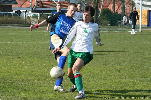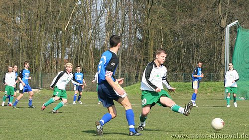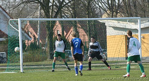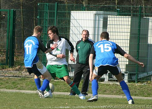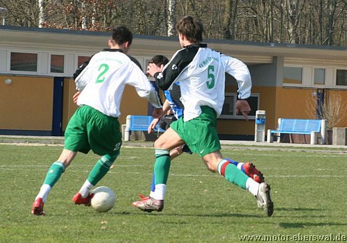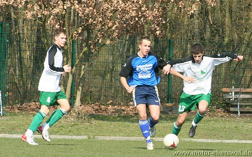 Von Beginn an übernahmen die Barnimer das Kommando und kontrollierten problemlos die Partie. Motor gelang ein Blitzstart und ging bereits in der 1. Spielminute mit 1:0 in Führung, als Felix Scharney nach einem tollen Sololauf zur Führung einschob (1.). Anschließend dominierte Motor zwar die Partie, hatte auf dem schwer zu bespielbaren Platz jedoch immer wieder Probleme im Spielaufbau. So mangelte es an der Durchschlagskraft im Spiel nach vorn, so dass die Zuschauer eine niveauarme Anfangsviertelstunde erlebten. Wenn die Waldstädter mal schnell und direkt nach vorne spielten, ergaben sich auch Torchancen, wobei Patrick Schröter zweimal aus guten Positionen vergab (12./30.). In der 32. Minute erhöhten die Gäste dann auf 2:0, als Kapitän Marcus Bülow nach einem lang geschlagenen Freistoß von Libero Schwarz mit dem Kopf zur Stelle war und unhaltbar einköpfte. Nur drei Minuten später hätte der FV fast das 3:0 erzielt, als Scharney völlig freistehend am Tor vorbei schoss (35.). Unmittelbar vor der Pause konnte dann auch der defensiv ausgerichtete Gastgeber die ersten Torchancen verzeichnen, als die Motor-Abwehr sowie Torwart Gebhardt jedoch im Bilde waren und es somit beim 2:0-Halbzeitstand blieb (43./45.). Zu Beginn des zweiten Durchgangs tasteten sich beide Mannschaften zunächst einmal längere Zeit ab, so dass sich das Spielgeschehen vorwiegend im Mittelfeld abspielte. Die erste nennenswerte Torchance der zweiten Hälfte vergab Scharney, der mit einem Drehschuss aus Sechzehnmetern