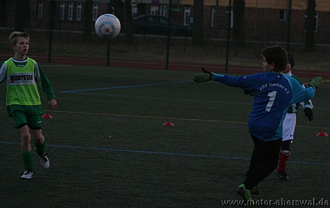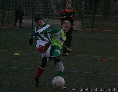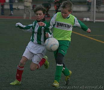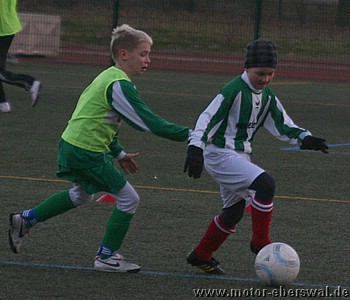 In einem abwechslungsreichen Nachholspiel spielt die E-Jugend auf dem Bernauer Kunstrasen Unentschieden. Dabei hatte man die Anfangsphase verschlafen und hätte sich nach einer ganzen Staffette guter Schussgelegenheiten der Bernauer bei einem Rückstand nicht beklagen brauchen. Bei einem der noch zaghaften Entlastungsangriffe hatte man jedoch Glück. Ein Mißverständnis zwischen Torwart und Abwehrspieler wurde von Marian Goldbach zur Führung genutzt. Danach hatte man auch langsam ins Spiel gefunden und es gab weitere Gelegenheiten. Nach der Pause hatte man die stärkste Phase im Spiel und es gelang durch einen Volleyschuss erneut von Marian Goldbach der zweite Treffer. Mit zwei weitere Großchancen, einen Lattentreffer und einen gut heruasgespielten Alleingang hatte man die Entscheidung in der Hand, aber es kam anders. Einen hohen Freistoss klärte man nicht konsequent und die Bernauer staubten zum Anschlusstreffer ab. Nur eine Minute später brachte ein Konter den Ausgleich. Es ging nun rauf und runter, zunächst wieder mit mehr Glück für Bernau, die mit einem Heber in Führung gingen. Erst kurz vor dem Ende gelang Niklas Zameith per Kopf nach einer Ecke der Ausgleich. In den Schlussminuten hätte das Spiel dann noch nach beiden Seiten kippen können, aber beide liessen noch eindeutige Chancen aus.