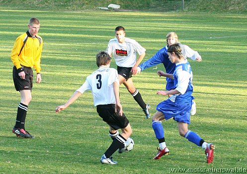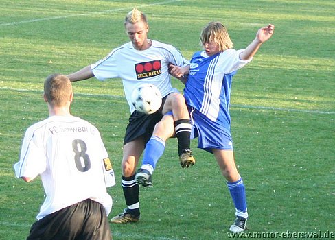 Innerhalb von 5 Tagen standen sich die B-Junioren von Motor und dem FC Schwedt zweimal gegenüber. Hatte Motor noch am Sonntag 3:0 in Eberswalde gewonnen, gerieten sie in Schwedt bereits in der 3.Minute in Rückstand. Nach einem Freistoss von halbrechts, konnte ein Schwedter unbedrängt einköpfen. Danach hatte Schwedt mehrere Gelegenheiten nachzulegen, zwei stramme Volleyschüsse gingen jedoch knapp über das Tor. Motor, die zuvor ebenfalls zwei Großchancen ausgelassen hatten, kamen ebenfalls nach einem Freistoß zum Ausgleich. Rico Eichstädt legte auf Pawel Bastian, im Nachschuss schoss Kevin Banaskiewicz den Ball ein. Torchancen in der ersten Halbzeit danach auf beiden Seiten, auch wenn es kaum herausgespielte Situationen gab. In die zweite Hälfte startete Motor besser und konnte durch Konrad Schulz nach einer Ecke per Kopf Motor in Führung bringen. Die Eberswalder verpassten es in der Folgezeit den dritten Treffer nachzulegen und gab das Spiel in der Schlußphase noch aus der Hand. Zunächst wurde nach einer Flanke der Ball nicht geklärt, nur drei Minuten später sorgte ein Abwehrfehler für die Schwedter Führung. Das Anrennen in den letzten Minuten gegen sich zurückziehende Uckermärker brachte nichts mehr ein.