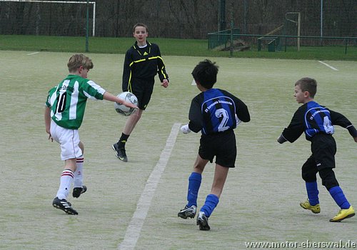 Auch in der Liga konnten die E-Junioren sich deutlich durchsetzen. Man bestimmte gegen Schöneiche weitgehend das geschehen und lies nur wenige Konter zu. Technisch waren die Eberswalder den Gästen klar überlegen, wählten lediglich öfter mal den Haken zu viel. Dennoch fielen die Tore nach einiger Anlaufzeit wie am Fliesband. Can Selke und Jonas Güntzel legten 2:0 vor, in den letzten 3 Minuten vor der Pause machten dann Tobias Schmidt (2x) und Can Selke mit drei weiteren Treffern schon alles klar. Auch wenn wenn in der zweiten Hälfte nicht mehr so konsequent nachgesetzt wurde, reichte die Verwertung der Chancen nochmals für vier Treffer (3x Schmdt, 1x Selke). Schöneiche nun zwar auch mit Gelegenheiten, aus denen jedoch nur der Ehrentreffer zum zwischenzeitlichen 7:1 gelang.