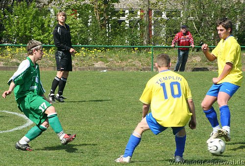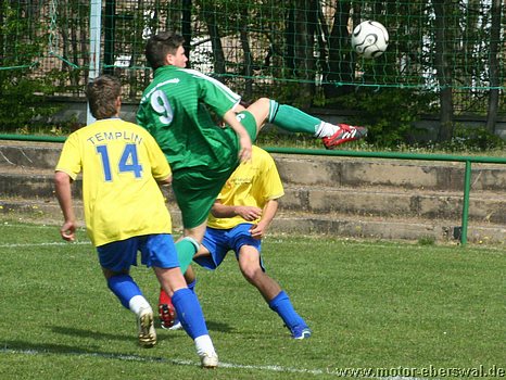 So lagen die Victorianer durch einen gut Herausgespielten Angriff und einem abgefälschten Freistoßtreffer zur Halbzeitpause nicht unverdient mit 2:0 in Führung (15./ 32.). Zu Beginn des zweiten Durchgangs agierte Motor zunächst entschlossener und kam durch einen Treffer von Patrick Schröter zum Anschlusstreffer (52.). Doch anschließend ließ die Heimelf erneut den unbedingten Siegeswillen sowie jegliche Einsatzbereitschaft vermissen. Zwar dominierte Motor die Partie, wirkte jedoch im Spielaufbau zu Einfallslos um die nicht einmal sonderlich geprüfte Victoria-Abwehr zu gefährden. Als Templin in der 57. Minute auf 3:1 erhöhte schien die Partie gelaufen. Denn auch in der Folgezeit fand der FV Motor kein probates Mittel um die Templin-Defensive in Verlegenheit zu bringen. Zu Durchschaubar trug der FV seine Angriffe hervor und konnte somit kaum Torgefahr erzeugen. So plätscherte die Partie bis zur 81. Minute dahin, ehe Erik Klein auf 3:2 verkürzte. Plötzlich erhöhte Eberswalde den Druck und zwang die zum Ende der Partie immer unsicher wirkende Gäste-Abwehr zu Fehlern. So erzielte Klein den Ausgleich, als er eine Unsicherheit des Victoria-Keepers ausnutzte und zum 3:3 vollendete (87.). Doch es kam noch schlimmer für die engagiert spielende Gästeelf. Denn als Patrick Schröter mit seinem 2. Treffer das 4:3 erzielte, hatte die Motor-Elf nicht nur Moral bewiesen, sondern die Partie auch endgültig gedreht. Da Spitzenreiter Strausberg ebenfalls gewann, ist die Tabellenkonstellation weiterhin unverändert und Motor Eberswalde rangiert mit drei Punkten Rückstand auf den FCS auf Platz zwei.