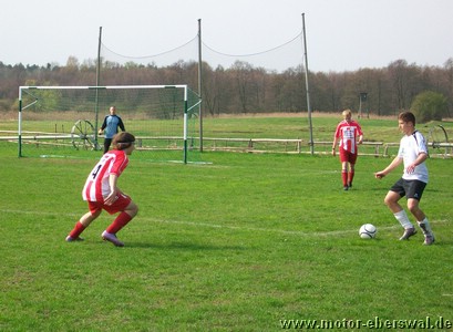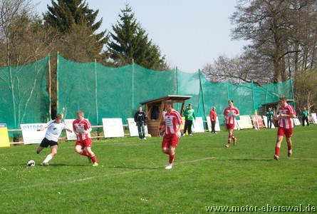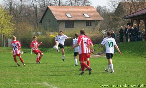 Mit Vietmannsdorf hatte es Eberswalde heute mit einem unbequemen Gegner zu tun. Am Ende sprang ein Arbeitssieg heraus. Das Spiel war geprägt durch viel Kampf und Ehrgeiz. Der Platz ließ auch keine Kunststücke zu. Für meinen Geschmack war es also ein sehr interessantes Spiel. Der unsicher wirkende Schiedsrichter brachte noch zusätzlich Würze ins Spiel. Das erste Highlight des Spiels war ein umstrittener Foulelfmeter für Vietmannsdorf. Der Strafstoß wurde zwar schwach geschossen, aber das reichte, weil sich der Torwart die falsche Ecke aussuchte. Die Atmosphäre war jetzt aufgeheizt. Über Karten aufgrund von kleinen Zankereien hätten sich beide Mannschaften nicht beschweren dürfen. Der Anteil des Schiedsrichters an der aggressiven Spielweise war nicht unerheblich. In seiner Unsicherheit verbannte er auch einen unbeteiligten Auswechselspieler hinter den Zaun. Die Halbzeitpause unterbrach die angespannte Atmosphäre nur kurzzeitig. In der zweiten Hälfte brachten Fehlentscheidungen immer wieder Feuer ins Spiel. Kallies hatte dann irgendwann die Faxen dick und drosch den Ball mit viel Kraft unhaltbar ins Tor. Kurz danach verlängerte ein Vietmannsdorfer unglücklich ins eigene Netz. Die Eberswalder Verteidigung machte heute seine Arbeit sehr souverän und ließ so gut wie keine Torchance zu. Im Angriff hatte man mit dem Beton der Gastgeber seine Probleme. Die 20 Zuschauer wurden bestens unterhalten. Fußball für die Fans! Danke Jungs!