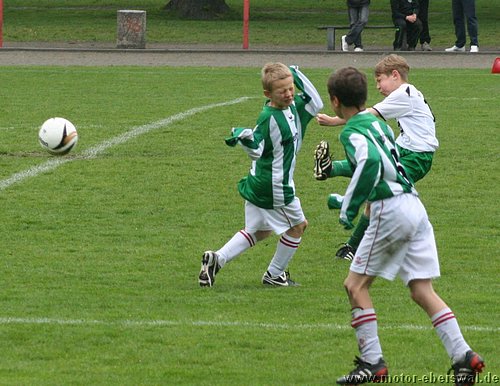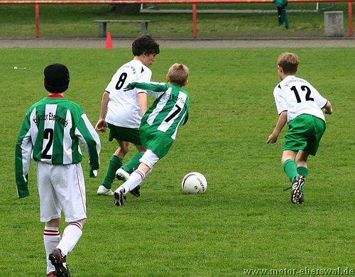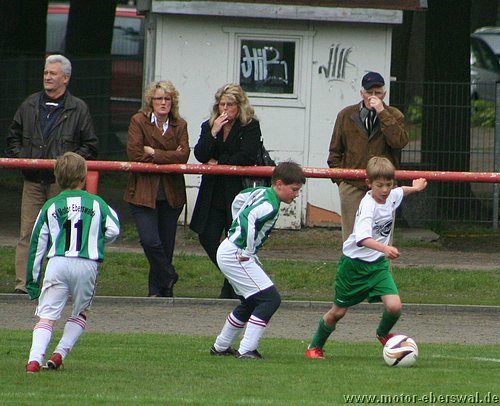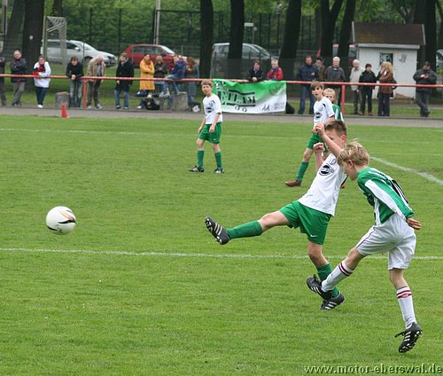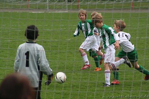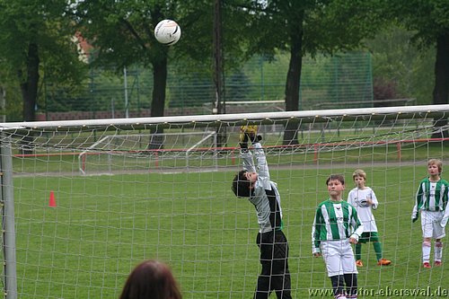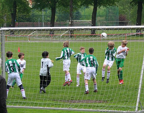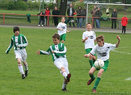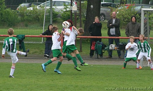 Im Viertelfinalspiel um den Landespokal kamen die E-Junioren beim SV Falkensee-Finkenkrug völlig unter die Räder, wobei das Endergebnis noch schmeichelhaft war. Denn die Eberswalder hatten im ganzen Spiel nicht einen Torschuss und waren durchweg sowohl körperlich als auch von der Spielübersicht vollkommen unterlegen. Einzig die schlechte Chancenverwertung zögerte den ersten Rückstand im Spiel lange hinaus, aber da hatten die Gastegeber auch schon ein halbes Dutzend Hundertprozentige zum teil leichtfertig vergeben. Ein Doppelschlag sorgte dann aber für klare Verhältnisse. In der zweiten Halbzeit stand Motor weiterhin nur hinten drin, wenige Befreiungsschläge nach vorne fanden weit und breit keinen Abnehmer, weil die Falkenseer selbst nach Ballverlusten noch deutlich schneller waren und jeden Ball ablaufen konnten. Falkensee erhöhte im Fünfminutentakt bis auf 5:0 und wechselten dann kräftig durch. Nachdem sich auch deren beide stärksten Spieler neben dem Feld ausruhen durften, merkte man das die Heimmannschaft einen Gang zurückgeschaltet hatte und Motor kam zu den einzigen beiden Offensivaktionen überhaupt im Spiel, doch mehr als ein Eckball, der nichts einbrachte kam nicht bei heraus. Kurz vor dem Ende mach ein weiterer wuchtiger Schuss das halbe Dutzend voll, womit man wie gesagt trotzdem noch gut bedient war.