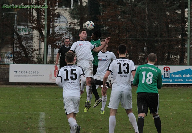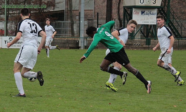 Die Vorentscheidung schon nach zwei Minuten, Ballverlust an der linken Außenseite und dann kommt die gesamte Eberswalder Abwehr vom Tempo nicht hinterher. Flanke vors Tor und da können sich zwei Stürmer aussuchen wer ihn machen soll. Nach einer Viertelstunde dann erneuter Konter und wieder kommen die Abwehrspieler nicht hinterher , 2-0. Endgültig gegessen war das Spiel dann als Marcin Dymek nach einer Rettungsaktion an der Strafraumgrenze die Rote Karte sah. Als zwei Minuten später ein Sonntagsschuss aus 30 Metern zum 3-0 führte war schon klar das nichts mehr zu holen war. In der zweiten Hälfte tat man sich dann nicht mehr wirklich weh, auch wenn Eric Mba die fünfte Gelbe Karte sah und somit ebenso gegen Bernau fehlen wird, ganz schwarzer Tag also für Preussen.