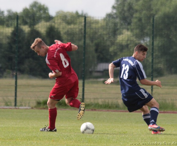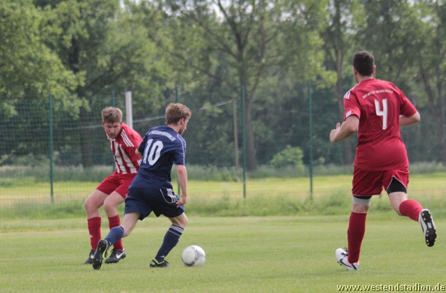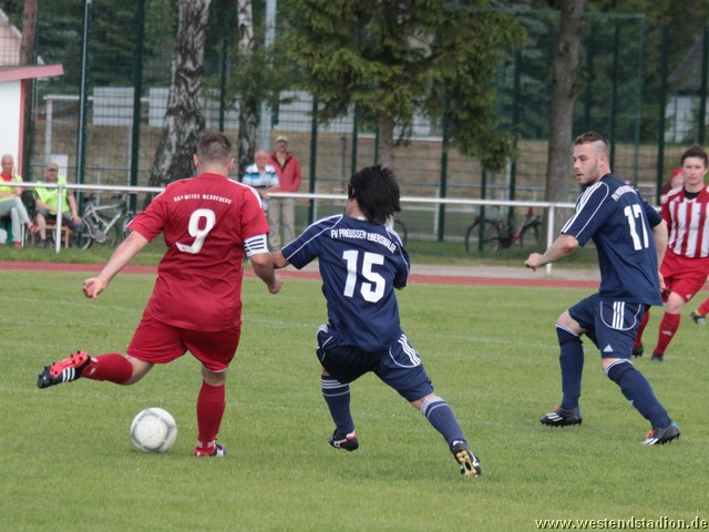 Die Anfangsphase noch ohne richtig abgeschlossene Aktionen. Dann aber in der 16.Minute die erste richtige Großchance für die Reserve. Christian Schlegel ist frei durch, trifft aber nur die Lattenunterkante, Tim Mengel kann per Kopf den Ball nicht richtig drücken und so geht er im zweiten Versuch drüber. Die körperlich robusten Werneuchener kommen langsamer ins Spiel, nutzen aber die erste Abwehrschwäche der Eberswalder zur Führung. Danach haben sie einige Spielanteile , werden aber noch vor der Pause im Doppelschlag überrascht. Zuerst zieht Taku Hishida auf der rechten Seite ein Dribbling in den Strafraum. Seinen Pass lässt Erik Wohlgemuth durch, so das Andreas Sasse völlig frei an den Ball kommt und trifft. Nur drei Minuten später spielt Tim Mengel einen Doppelpass am Strafraum mit Erik Wohlgemuth und ist dadurch frei vorm Tor und macht die Führung mit der es dann auch in die Pause ging. In der zweiten Halbzeit, trotz mehr Ballbesitz dann zu ängstliches Spiel und hohe Anfälligkeit bei Kontern, aus denen Werneuchen aber lange auch nichts macht. Erst nach einer knappen Stunde bekommen sie nach einer Abwehraktion im Strafraum Elfmeter der zum Ausgleich verwandelt wird. Nur drei Minuten später kommt Preussen aber zurück. Der eingewechselte Gentarou Murakami zieht auf der linken Seite an der Grundlinie an seinem Gegenspieler vorbei und flankt, der Keeper will den Ball fangen, klatscht aber nur ab so das Tim Mengel den Abstauber versenken kann. Die Vorentscheidung dann fünf Minuten danach, als Tim Westphal im Strafraum gelegt wird und Christian Schlegel den Strafstoss verwandelt. Preussen spielt die Partie nun ruhiger herunter und drei Minuten vor Schluss kann noch der fünfte Treffer markiert werden. Christian Schlegel setzt sich nach Doppelpass mit Tim Mengel im Strafraum durch und schiesst auf den Keeper, aber der Abpraller wird von Gentarou Murakami in die Tormitte eingeschoben. Zwar kann Werneuchen im direkten Gegenzug noch mal treffer, aber auch in der längeren Nachspielzeit geriet der Auswärtssieg nicht mehr in Gefahr.