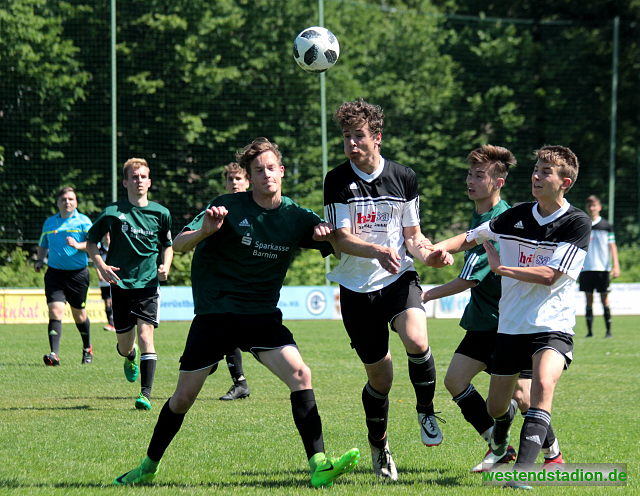 Ein Stellungsfehler machte den Weg für den Gast frei der gleich mit dem ersten Angriff in Führung ging. Die Barnimer aber gut im Spiel, auch wenn sie sich in der ersten Halbzeit lange schwer taten tu Strafraumszenen zu kommen. Da man auch hinten wenig zu lies, spielte sich die Partie im Mittelfeld ab. Lange Bälle wurden durch den böhigen Ostwind regelmäßig zu lang. Erst ein Dribbling kurz vor der Pause mit Ausgang an der linken Eckfahne bringt Paul Knappe in Position der den Ball unhaltbar in den rechten Dreiangel schiessen kann. In der zweiten Hälfte hatten dann die Gäste den Rückenwind, machten aber auch nicht viel daraus. Bis auf zwei Versuche aus der Distanz und einem abgerutschten Kopfball nach einer Freistossflanke kam wenig rauus. Preussen/Finowfurt lief sich mit zu vielen Querpässen regelmäßig vorm Strafraum fest. Die erneute Führung der Gäste dann ein Geschenk wie es eigentlich nur bei den Kleinfeldmannschaften der jüngeren Jahrgänge üblich ist. Veit Gumlich schiesst einen Abschlag genau in die Beine eines Stürmers und der trifft nach wenigen Schritten mit Hilfe des Innenpfostens. Nun musste mehr für die Offensive getan werden. Aber zunächst kamen so nur Konter für die Gäste bei heraus. Erst in der Schlussphase ging man zu Einzelaktionen über was mehr Erfolg versprach. Immerhin wurde man noch belohnt. Denn Christopher Frank machte nach einem Anspiel im Halbfeld mit einem Alleingang noch einmal den Ausgleich. Die Spielgemeinschaft bleibt damit in vorderen Feld der Tabelle. In dieser Bindestrich-Liga hat ohnehin keine der vorderen Mannschaften ein Aufstiegsrecht, da Spielgemeinschaften nicht in die Brandenburgliga aufsteigen dürfen.