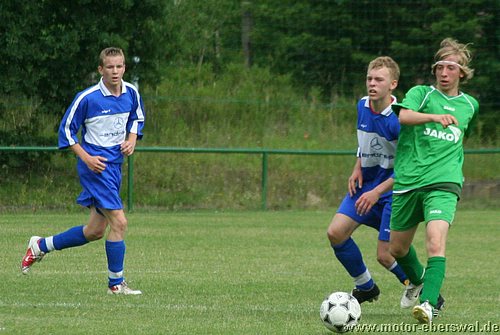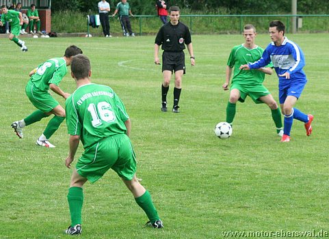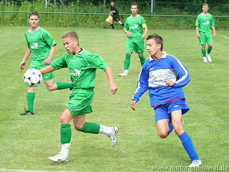 Im Heimspiel gegen den Ludwigsfelder FC hatte die B-Jugend zunächst Glück denn die Gäste bestimmten das Spiel auch wenn sie immer wieder Konter der Eberswalder zuliessen. Motors Abwehr war bei mehreren Chancen des Gegners schwer beschäftigt. Nach einer Ecke aus dem Gewühl heraus ging Motor dann jedoch durch Gordon Fuhrmann in Führung. Mit einem Freistoss von der Strafraumgrenze erzielte Pawel Bastian das 2:0. In der zweiten Hälfte hatte Motor zunächst Chancen den Sack zuzumachen, die beste zweifellos ein Strafstoss, den Pawel Bastian an den Pfosten setzte. Danach lies bei Motor, wie schon in den vorrangangenen Spielen zunehmend die Kraft nach und der Gegner wurde immer gefährlicher. Einen Stellungsfehler nutzend erzielten sie in der 55.Minute den Anschlusstreffer und glichen fünf Minuten später aus. Nun bestimmten die Gäste das Spiel und waren der Führung sehr nahe. Bei mehreren Großchancen wurde das Tor knapp verfehlt. Drei Minuten vor dem Ende konterte Motor noch einmal über die linke Seite, die Hereingabe verwertete Max Walter zum 3:2. In der Schlussphase hätte der selbe Spieler sogar noch sein zweites Tor machen können, scheiterte aber am stark parierenden Torwart.