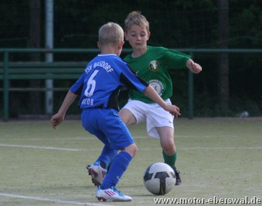 Beeindruckend deutlich konnte Motor das Spitzenspiel gegen Basdorf gewinnen. Der aussichtsreichste Verfolger wurde keinen Moment unterschätzt und mit schnellen Toren von Philip Tulke und Charlie Gruzialewski ging man in Führung. Basdorf hatte keine richtig zwingenden Chancen in der ersten Halbzeit, in der es durch einen Kopfballtreffer von Anton Jur bereits zur Vorentscheidung reichte. Im zweiten Abschnitt lies man es ruhiger angehen. Basdorf weiterhin zu harmlos um die Eberswalder in Bedrängnis bringen zu können. Diese hatte weitere Möglichkeiten durch Niklas Bauschke und Moritz Elsholz. Es gelang noch das 4:0 durch Charlie Gruzialewski , ein nach dem Spielverlauf verdientes Ergebnis. Mit einem Spiel mehr hat man 3 Punkte Vorsprung auf Basdorf, wichtig ist da der Blick auf die Tordifferenz. Hier ist man derzeit 12 Tore im Vorteil , den es in den letzten beiden Spielen zu verteidigen gilt.