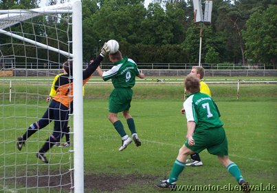 Dabei begann das Spiel mit Verspätung, da die A-Jugenspieler erst spät am Platz eintrafen, die ungenügende Vorbereitungszeit sah man dem Spiel auch an. Mit wenig Schwung hatte Motor den insgesamt schwachen Gegner (Vorletzter der Tabelle) zwar stehts im Griff, konnte aber lange kein zwingendes Spiel aufziehen. Erste grössere Gelegenheiten hatten Präger und Vorpahl erst nach einer halben Stunde. Der längst fälligen Führung ging ein Abspielfehler in der Abwehr der Rathenower voraus den Vorpahl mit einem Alleingang nutzte (43.). Die zweite Hälfte (in der es stark zu regnen angefangen hatte) begann für Motor sofort erfolgreich, als der Rathenower Keeper bei einem Freistoss von Vorpahl den nassen Ball selbst ins kurze Toreck klatschte. Motor spielte in den folgenden 20 Minuten praktisch Dauerdruck auf das gegnerische Tor und so lies das 3:0 durch einen Kopfball von Dietze nicht lange auf sich warten (56.). Nach einer sehenswerten Kombination vollendete Gräfe mit einem unhaltbaren Volleyschuss (68.) zum 4:0, die danach merklich einen Gang zurückschalteten. So bekam Rathenow die Abwehr doch noch in den Griff ohne jedoch nach vorne wirklich gefährlich zu werden. Ihre erste ernsthafte Torgelegenheit hatten sie dann in der 85.Minute, als ein Stürmer frei vor dem Tor um einige Meter rechts verzog. Einer Unachtsamkeit der Hintermannschaft verdankten sie dann in der vorletzten Minute doch noch den Ehrentreffer. Was das Ergebnis wert ist hängt im wesentlichen vom Spiel Stahl Brandenburg-Hansa Wittstock am Freitag ab. Nur bei einer Brandenburger Niederlage, hätte Motor die Gegelegenheit am Sonntag im direkten Vergleich durch einen Sieg die direkte Qualifikation für die Landesliga zu schaffen.