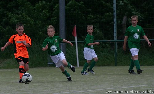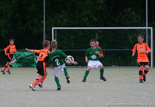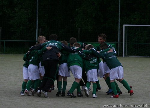 Die F-Junioren schlagen Schwanebeck mit 6:1 und holen so im letzten Spiel die Tordifferenz gegenüber Zpernick auf belegen so noch den dritten Platz. Die Anfangsphase gehörte in dem Spiel sogar den Gästen, die sich zweimal an der Grundlinie durchsetzten aber keinen richtigen Abschluss hinbekamen. Motors Angriffe zunächst noch nicht erfolrgreich, erst in der 9.Minute gelang dann die Führung im zweiten Anlauf. Charlie Gruzialewski traf den Pfosten aber Philip Tulke stand genau richtig um den Ball einzuschieben. Die Hoffnungen auf ein schnell hochzuschraubendes Ergebnis erhielten drei Minuten später einen Dämpfer als die Gäste einen Fehler in der Abwehr nutzten und auch Torwart Marvin Aplas auf dem falschen Fuß erwischt wurde so das der Ball rein ging. Doch es konnte schnell geantwortet werden, Charlie Gruzialewski machte auf Vorarbeit von Philip Tulke die erneute Führung und ein schönes Tor von Hannes Weichselbaum stellte die Weichen wieder in Richtungs des Ziels, das man bei vier Toren Vorsprung erreicht hätte. Nach der Pause dominierte Motor das Spiel und hatte viele Gelegenheiten, Schwanebeck konterte nur selten und die Bälle wurden schnell abgefangen. Erneut Philip Tulke gelang mit einem Heber das 4:1 , wobei der Ball knapp hinter der Linier war. Ausgerechnet der rechnerisch wichtige fünfte Treffer war dann ein Eigentor, denn es war der Kopfball eines Verteidigers der den Ball ins Netz beförderte. Motor setzte dann durch Moritz Elsholz , auf Vorlage von Kevin Werner noch einen drauf und hätte noch höher gewinnen können. Denn einen sehr schön herausgespielten Angriff über Philip Tulke und Devin Theus stoppte der Schwanebecker Torwart mit einer Glanzparade die auch den Applaus der Eberswalder Eltern fand. Das Team von Marcus Bülow und Sebastian Nähring konnte so in der Tabelle noch zwei Plätze gut machen und die Saison auf dem Bronzerang abschliessen. Nächste Woche fährt man nun zu dem hochkarätig besetzten Abendturnier nach Seelow.