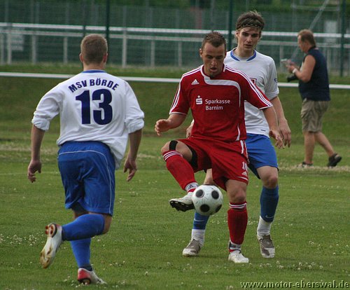 Beim Landesligisten Magdeburger SV Börde gab es eine hohe Niederlage zu Beginn des Trainingslagers. Motor konnte dabei in den ersten 20 Minuten sogar mehr Ballbesitz für sich verbuchen und hatte gleich zu Anfang zwei klare Torchancen durch Christian Schlegel und Neuzugang Marcel Urbanowicz. Die Heimmannschaft ging allerdings nach einem fatalen Ballverlust von Konrad Schultz mit dem ersten Torschuss in Führung. Dennoch konnte Motor weiter das Mittelfeldspiel bestimmen, auch wenn man im Abschluss überhastet zu Werke ging. Der zweite Gegentreffer dann unmittelbar vor der Pause, bei einem Konter nach Ballverlust in der Vorwärtsbewegung waren gleich zwei Stürmer frei durch, eine Rettungsaktion von José Hornemann kam zu spät und der Ball wurde Swen Lichtenberg durch die Beine ins Tor geschossen. In der zweiten Halbzeit lies Motor Eberswalde dann deutlich nach und wurde gleich wieder vom nächsten Angriff der Gäste überrascht. Nach dem Schuss in die lange Torecke haderten die Motor Spieler noch mit sich, als ein Fernschuss diesmal von halblinks zum vierten Gegentor genau in den unteren Winkel passte, danach hatte man sich aufgegeben und reagierte nur noch auf die Magdeburger Angriffe. Selbst Stellungsfehler der Gastgeber konnte nicht zu eigenen Toren genutzt werden. Entweder spielte man zu kompliziert oder brachte einfach den letzten Pass nicht auf den frei gelaufenen Stürmer. Auf der Gegenseite war weiterhin fast jeder Schuss ein Treffer, wobei es die nun völlig unsortierte Abwehr immer wieder leicht machte. So erhöhten die Magdeburger bis auf 7:0.