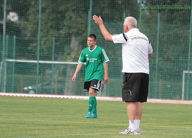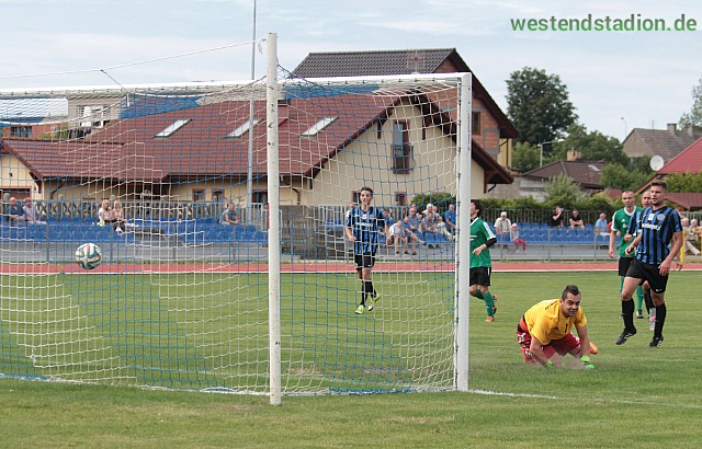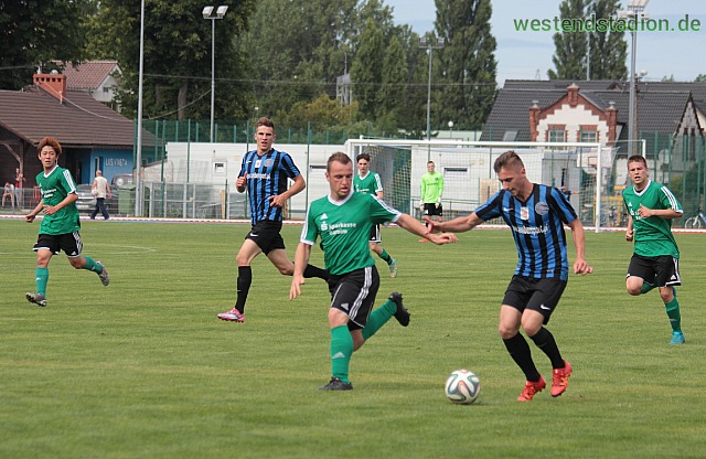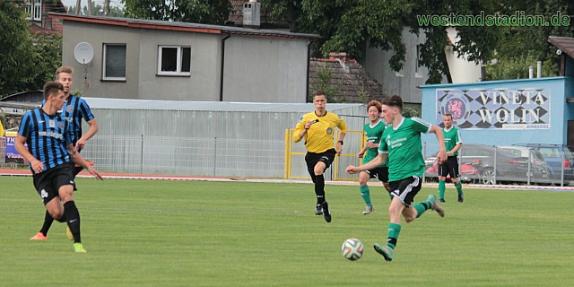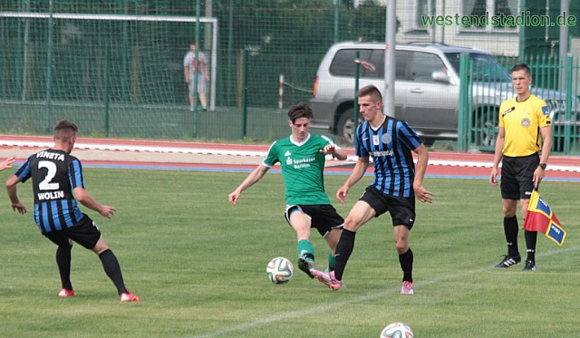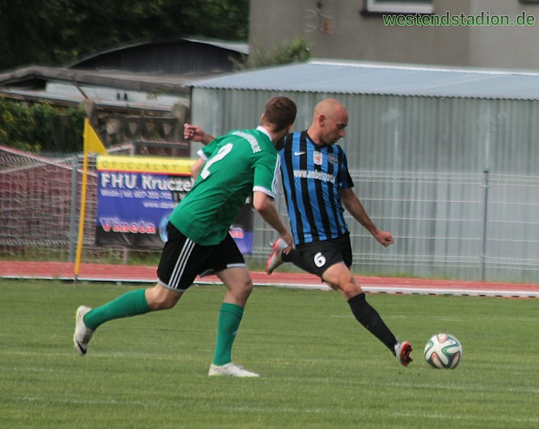 Anders als angekündigt fand das Spiel in Wolin statt, da es in Misdroy im Stadion nur einen Kunstrasenplatz gibt. In Wolin wartete dabei aber das deutlich stärkere Kaliber mit als Sieger der Drittligastaffel wäre Vineta Wolin fast in die professionelle 2.Liga aufgestiegen. Allerdings waren es die Polen die Preussen zunächst warten liessen, denn erst als noch einige Spieler eingetroffen waren ging es eine gute halbe Stunde später los. Frank Rohde befürchtete für das Spiel eine deutliche Packung (immerhin hatte Wolin in Altlüdersdorf vor kurzem mit 3-0 gewonnen). Das schien sich auch zu bewahrheiten , denn in der 12. und 13. Minute fing man sich zwei ziemlich billige Tore. Allerdings war zumindest beim ersten Tor eine klare Abseitsstellung vorraus gegangen und auch in der zweiten Szene sah es sehr danach aus. Preussen stand sehr tief drin und versuchte zu kontern, was bei der Schnelligkeit der Polen in beide Richtungen kaum gelang. Dennoch war man effektiv , denn die erste Torchance im Spiel wurde dann auch gleich zum Anschlusstreffer verwandelt. Wolin , auch durch einige konsequente Abwehraktionen beeindruckt spielte danach nicht mehr so druckvoll und lies nun auch Räume für die Eberswalder die sich gut befreiten. Nach Packung sah es nun nicht mehr zwingend aus. Auch wenn Vineta noch jede Menge Auswechselspieler zur Verfügungs standen. Währen Preussen gerade mal zwei Ergänzungsspieler hatte. Das man kurz vor der Pause noch einen Gegentreffer bekam war eher unglücklich. Denn bei einem Dribbling holte ein Stürmer einen Elfmeter raus. Stellte sich bei Ballabschirmen sehr geschickt an und fiel dann so das man den Strafstoss geben musste. Der wurde dann sicher verwandelt. In der zweiten Halbzeit hatten die Polen gewechselt und man merkte das es nicht so gut zusammen lief. Das nutzte Preussen um sich besser ins Szene zu setzen. Praktisch gab es eine Viertelstunde gar keine Torszenen. Das 4-1 dann durch einen Kopfball, der überraschen kam, da die Ecke erst kurz gespielt wurde, dann dorch lang geschlagen und aus nächster Distanz abgefälscht wurde. Piotr Rusek bei Preussen zeichnete sich danach mehrfach aus als er Stürmern den Ball gerade noch vom Fuss nehmen konnte und zwei Schüsse stark parierte. Wolin spielte die Chancen allerdings auch sehr lässig aus. Preussen konnte man an dem Tag aber wirklich die Effektivität nicht absprechen, denn nach einem weiteren Konter wurde die Chance mit einem Schuss von der Strafraumgrenze unhaltbar verwandelt. Leider zeigte man unmittelbar danach nicht die nötige Konsequenz in der Defensive und fing 9sich im direkten Gegenzug einen ziemlich billigen Konter genau durch die Mitte. Die letzten 10 Minuten war dann nicht mehr viel los, Preussen konnte mit dem Ergebnis einigermaßen zufrieden sein und ist um eine Erfahrung in der Vorbereitung reicher.