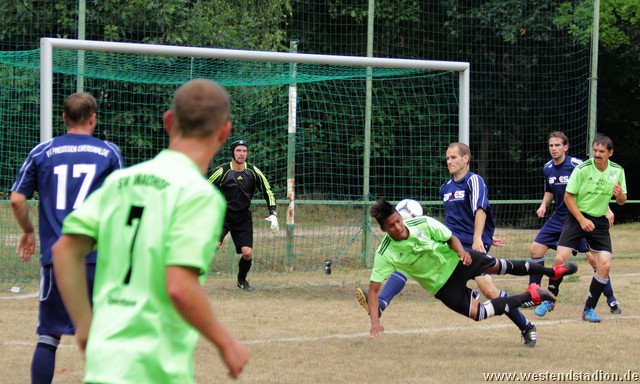 In der zweiten Halbzeit die Preussen Reserve weiter bestimmend, auch wenn angesichts der anhaltenden Hitze nicht das letzte Tempo gegangen wurde. Zwei Pfostenschüsse von Gordon Fichtner und Paul Ziethen waren zu verzeichnen, Spechthausen hatte erst in der Schlussphase noch eine Großchance, aber der Ball wurde vor der Torlinie geklärt.