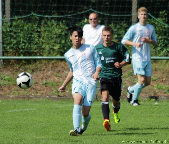 Die Gegner bestimmten die erste halbe Stunde und gingen durch einen Nachschuss nach einem Freistoss in Führung. Danach hatten sie noch zwei Gelegenheiten diese Führung auszubauen. Preussen bekam nur langsam das Spiel in den Griff. Paul Schuster und Kenny Ladewig hatte erste Chancen zum Ausgleich kurz vor der Pause. Zwei Kopfbälle von Domenick Adam nach Ecken konnten vom Torwart abgewehrt werden. In der zweiten Halbzeit drückte man den Gegner dann hinten rein und kam nach einem Eckball durch einen weiteren Kopfball von Domenick Adam zum Ausgleich, dem folgte nur zwei Minuten später durch einen Freistoss von Nick Lange, der durch die Abwehr unabgefälscht durch ging die Führung. Es wurde danach weiter nach vorne gespielt. Auf vorlage von Nick Lange schliesst Kenny Ladewig einen Alleingang zum 3-1 ab. Dem folgt durch einen Sololauf von Paul Schuster über die linke Seite und Abschluss über den Innenpfosten das 4-1. Der Gegner wird zuletzt völlig abgeschossen, als Leon Geist nach einem Eckball genau richtig einläuft und unbedrängt zum fünften Treffer einnetzt. Als Kenny Ladewig zehn Minuten vor Schluss ausgewechselt wird, kommt dafür Hannes Drews ins Spiel, der schon nach 15 Sekunden mit seinem ersten Ballkontakt das halbe Dutzend voll macht. Nach dem Weiterkommen im Pokal lässt die Revange nicht lange auf sich warten, denn schon nächsten Sonntag steht man dem gleichen Gegner am ersten Spieltag der Landesklasse wieder gegenüber.