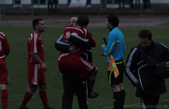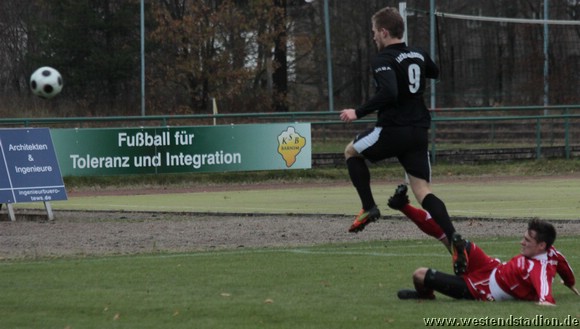Die erste Halbzeit bestimmten die Gäste aus Oranienburg, diese holten jede Menge Eckstösse raus hatten aber bei den Strafraumszenen gegen eine konsequent zupackende Abwehr wenige klare Möglichkeiten. Kristian Stelse muss einen Ball von der Linie schlagen, bei zwei Schüssen von der Strafraumgrenze fehlte nicht viel. Preussen nur sporadisch mit Angriffen, hat aber vor der Pause noch eine Großchance. Der eingewechselte Rico Eichstädt zieht bei einem Konter den Ball ganz knapp links daneben. Die zweite Halbzeit beginnt mit einer Offensive der Eberswalder, nach einem Eckball setzt der nach vorne geeilte Kristian Stelse einen Kopfball knapp übers Tor. Dann macht wieder Sachsenhausend das Spiel und lässt die größte Gelegenheit im Spiel aus. Ein abgeprallter Ball erreicht den Stürmer völlig freistehend am Fünfmeterraum und dieser schiesst Vollspann übers Tor. Die Szene wird zum Knackpunkt der Partie, denn danach verliert Sachsenhausen völlig die Ballsicherheit und gibt im Mittelfeld immer mehr Bälle ab. Bei einem Konter kann Christian Schlegel einen langen Ball erlaufen und nach umkurven des Torwarts macht er aus spitzem Winkel die Führung. Sachenhausen hat im Gegenzug eine Ausgleichschance per Kopf, aber der Ball wird vor der Linie geklärt. Danach zieht Rico Eichstädt einen unwiederstehlichen Lauf an der rechten Außenbahn an, bei dem sein Bewacher nicht hinterher kommt. Im Strafraum spielt er halbhoch den mitgelaufenen Christian Schlegel an, der mit einem Volleyschuss trifft. Die nun weit aufrückenden Gäste sehen auch beim dritten Tor der Preussen alt aus. Ein Solo an der linken Ecke von Christian Schlegel wird zentral noch abgewehrt, der Ball kommt an der Strafraumgrenze zum völlig freistehenden Steffen Sasse der den Ball im kurzen Toreck unterbringt. Es geht weiter im Drei-Minuten-Takt, Rico Musick gewinnt einen Zweikampf an der Mittellinie und marschiert auf der halblinken Seite Richtung Tor, als sich eine Verteidiger nähert legt er quer auf Christian Rauch und der markiert im Alleingang das 4-0. Der Gegner jetzt ohne große Gegenwehr, versucht zwar mit hohen Bällen vors Tor zu kommen, aber diese werden zu lang angesetzt und sind kein Problem für Mathias Krause im Eberswalder Tor. Nach der schwachen Leistung vom Mittwoch konnte heute wieder einiges gerade gerückt werden.