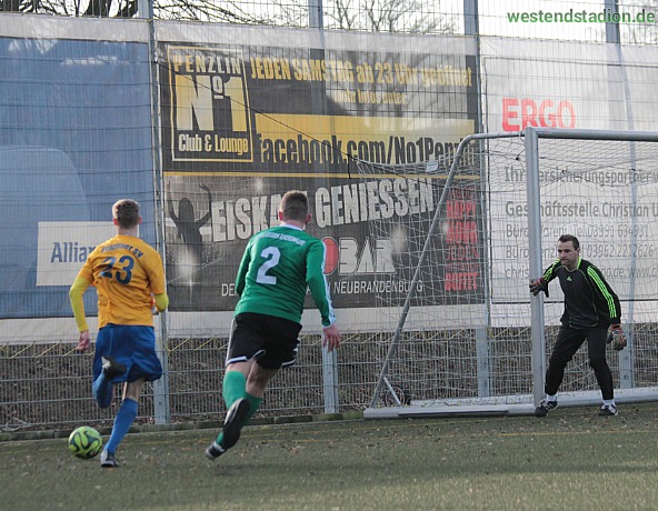 Die Auftsellung machte zu nänächst einige Probleme, da keim etatmässiger Torwart zu Verfügung. Der Hallenturnier-erprobte Rico Musick versuchte sich zwischen den Pfosten, der gleich beim ersten Angriff der Penzliner gar nicht gut aussah. Ein Ball wurde zur Mitte prallen gelassen und so ging Penzlin in Führung. Preussen sortierte sich erst langsam, wurde dann aber immer überlegener. Ein Lattenschuss von Tobias Koepnick wurde aus Nahdistanz von Eric Mba zum Ausgleich eingeköpft. Nur fünf Minuten später, war Kim Schwager bei einem schon herausgespielten Konter zur Stelle und machte die Führung für Eberswalde. Penzlin kam jetzt gar nicht mehr nach vorne und Preussen lies den Ball laufen. Der dritte Treffer gelang wieder Eric Mba, der die auf Abseits spielende Innenverteidigung stehen lies und zentral durch traf.
