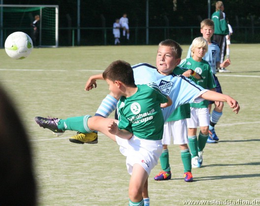 Eine erste Standortbestimmung der neu formierten E-Jugend war der FSV Basdorf. Dieser ist wieder in die Ost-Staffel gewechselt und in den F-Junioren hatte dieser Jahrgang Eberswalde schon sehr gefordert. In der Anfangsphase machten sich die vorhandenen Größenvorteile von Basdorfer Spielern noch bemerkbar und Preussen zeigte sich einige Male beeindruckt, hatte aber Glück, das die Chancen nicht genutzt wurden. Doch im weiteren Verlaufe des Spiels setzte sich die bessere Raumaufteilung und das sichere Paßspiel der Eberswalder immer mehr durch und Chancen wurden konsequent genutzt. Philip Tulke zog nach einem Dribbling über die linke Seite sofort ab und konnte aus der Distanz die Führung erzielen. Basdorf danach beeindruckt, lies sich weiter hineindrängen. Das nutzten die Eberswalder noch vor der Pause zum zweiten Treffer , wieder war Philip Tulke der Torschütze. In der zweiten Halbzeit war man jederzeit Herr der Lage und gestattete Basdorf nur wenige Konter. Lediglich bei der Chancenverwertung haperte es nun. Doch gab Gelegenheiten die Sache sehr viel klarer zu Gestalten. Aufregung gab es um einen Basdorfer Konter, der durch einen robusten Einsatz gestoppt werden konnte. Da bei allem Einsatz der Ball gespielt wurde, lief das Spiel weiter. Am Ende wurde der Sieg ungefährdet über die Runden gebracht und etablierte die E-Jugend wieder unter den vorderen Mannschaften in der noch jungen Tabelle.